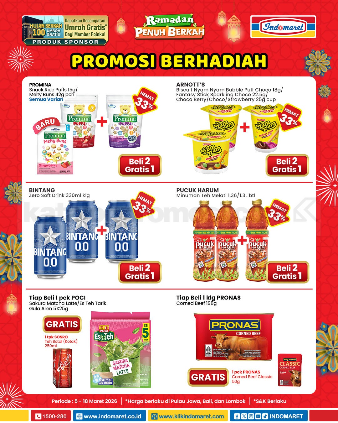 PROMO BERHADIAH INDOMARET BULAN INI 05-11 Maret 2026. Langsung aja belanja sekarang dan manfaatin promo spesial ini. Semakin banyak belanja, semakin besar kesempatan kamu!