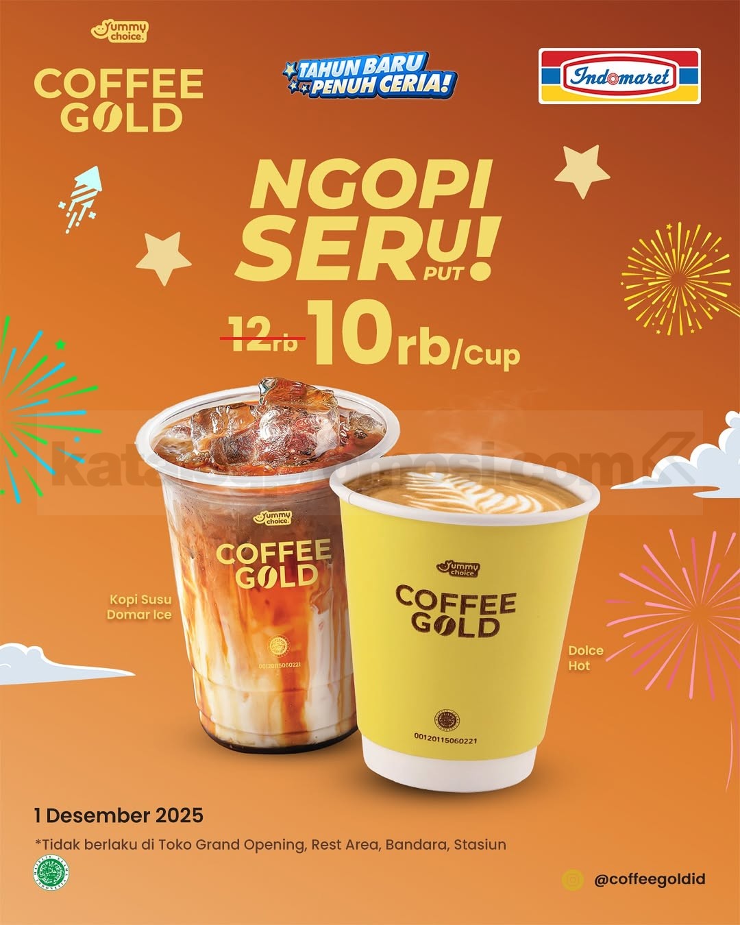 Segera kunjungi Indomaret tertentu dan nikmati Promo Indomaret Coffee Gold Ngopi Seruput Rp10Ribu, biar mood Senin makin happy dan semangat Desember makin berasa! โโจ