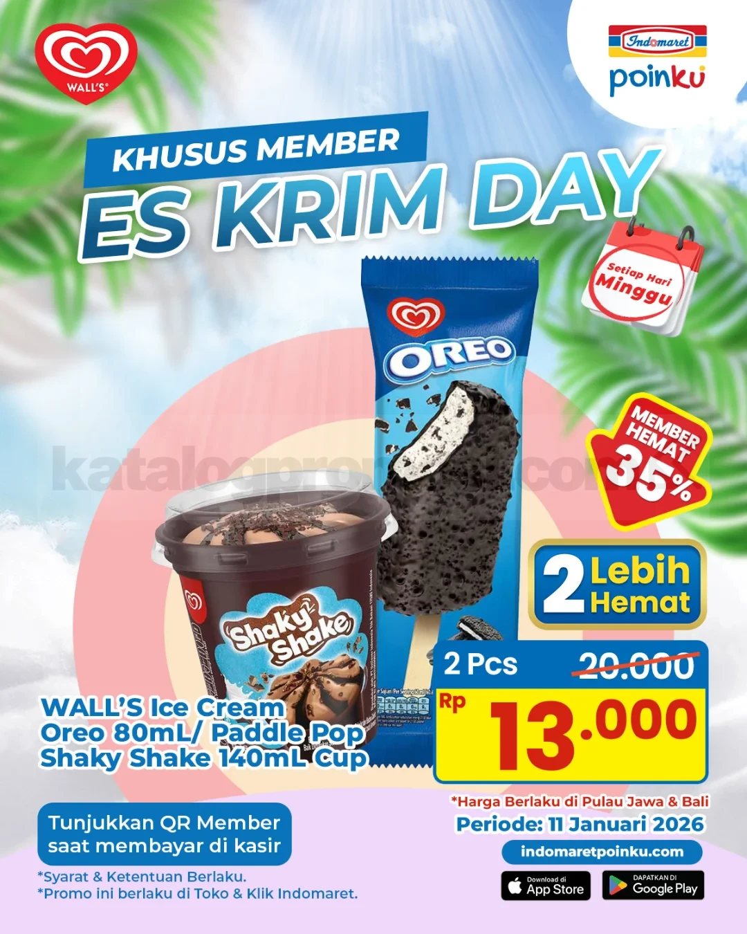 Promo Indomaret ES KRIM DAY 2 Wall’s Ice Cream Rp. 13.000 berlaku 11 Januari 2026, beli 2 es krim Wallβs pakai QR Member Poinku di Indomaret Jawa & Bali.