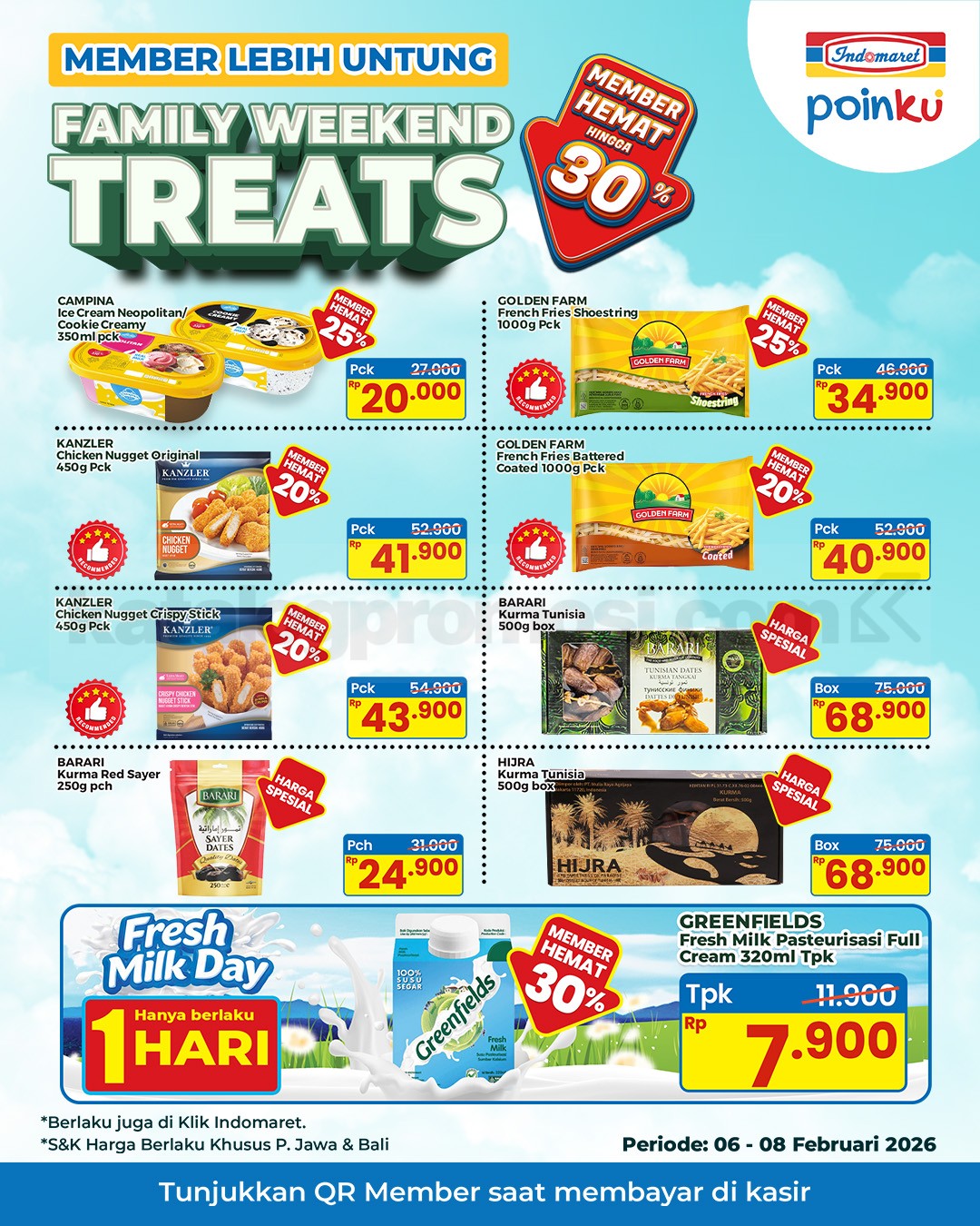 Promo Indomaret Family Weekend Treats minggu ini periode 06-08 Februari 2026 khusus untuk member di toko Indomaret dan Klik Indomaret.
