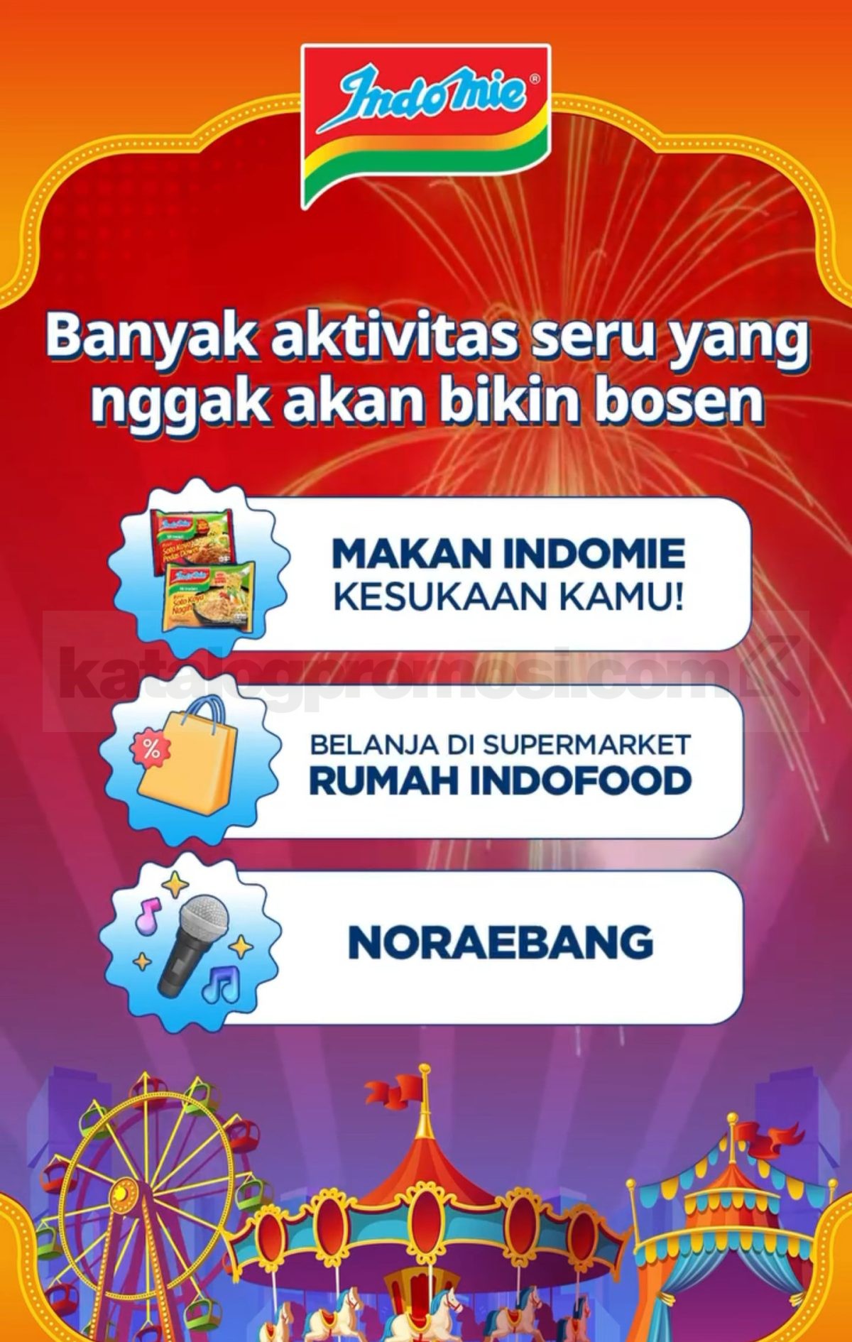 Promo Indomie Jakarta Fair Kemayoran 2025 siap manjain Indomielovers dengan makan Indomie, belanja di Supermarket Indofood, karaoke, dan banyak aktivitas seru lainnya!