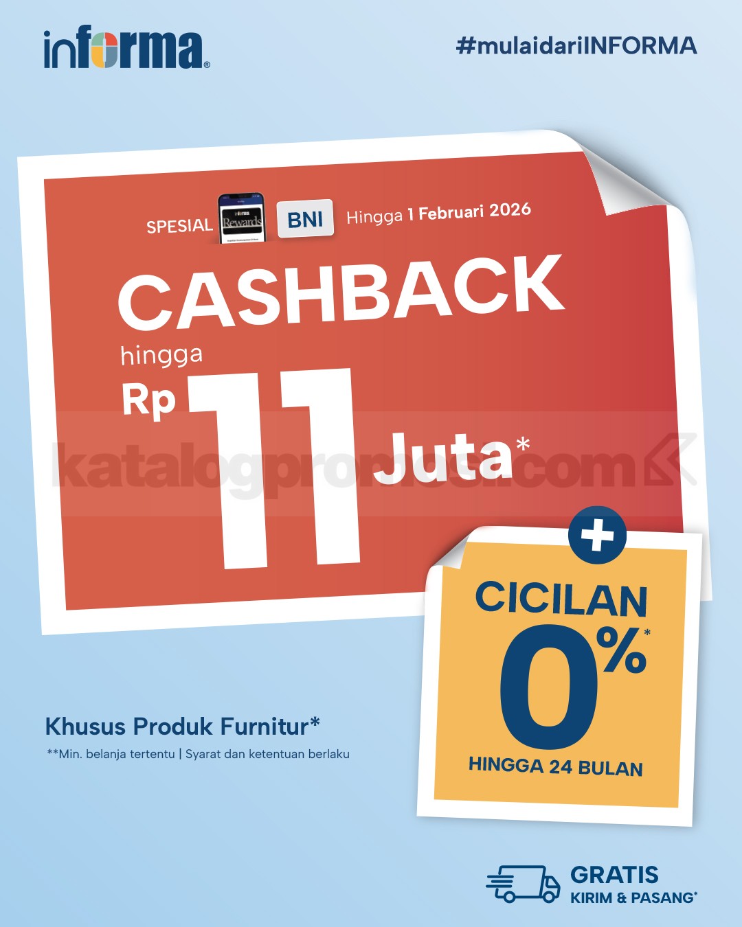 Promo berlaku untuk pengguna Informa Rewards dan pemegang Kartu BNI yang berbelanja online.