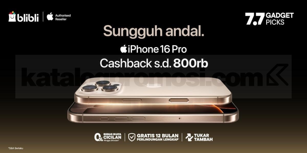 Promo iPhone 16 Pro di Blibli 7.7 Gadget Picks Cashback hingga 800K.