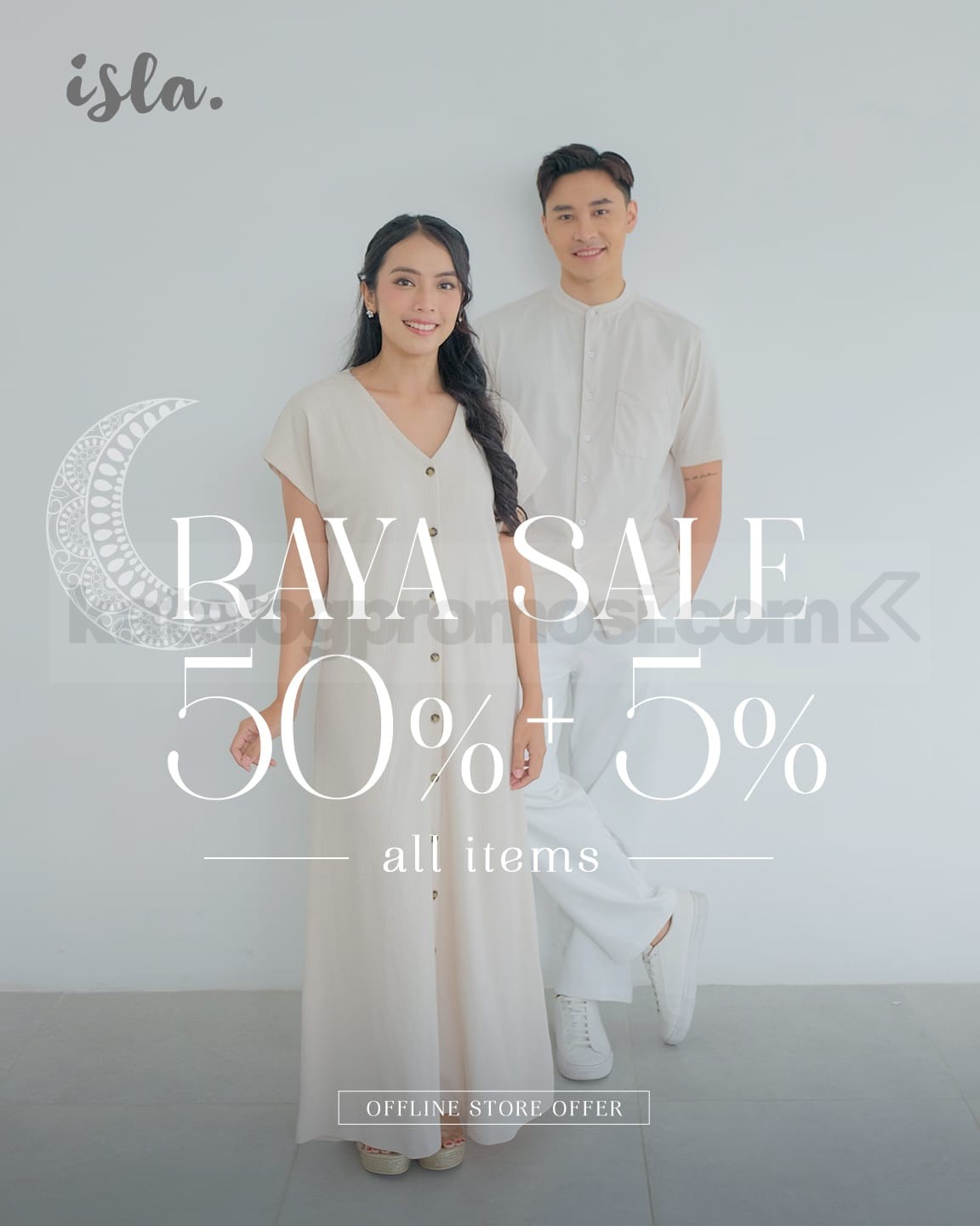 Promo Isla Raya Sale Diskon 50% + 5% ini jadi kesempatan menarik untuk berburu outfit Raya dengan harga lebih hemat di semua toko Isla.