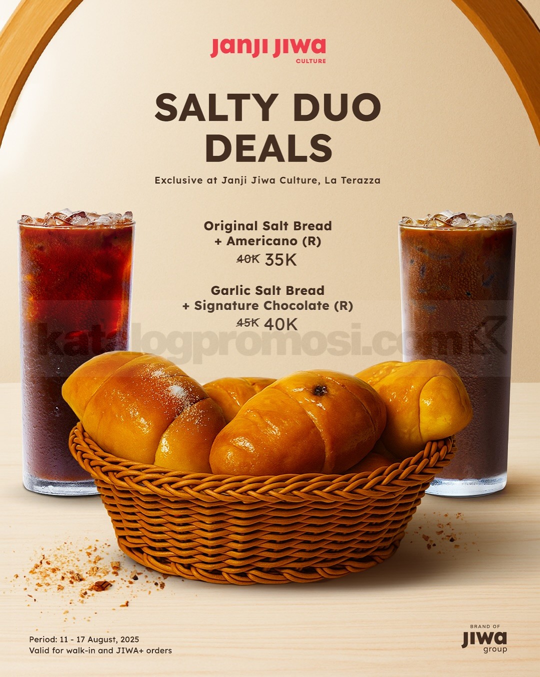 Promo Janji Jiwa Culture Salty Duo Deals mulai Rp18.000 berlaku mulai tanggal 11–17 Agustus 2025 khusus di Janji Jiwa Culture, La Terazza untuk walk-in & JIWA+ orders.