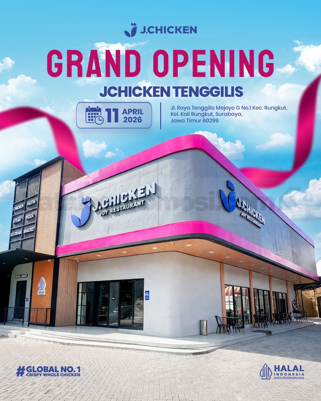 Manfaatkan Promo JChicken Grand Opening Tenggilis Gratis Whole Chicken dan berbagai penawaran menarik lainnya selama periode berlangsung.
