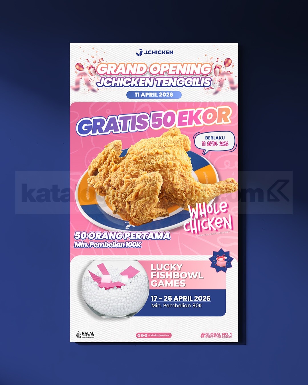 • 11 April 2026: Gratis 50 whole chicken untuk 50 orang pertama (min. transaksi Rp. 100.000)