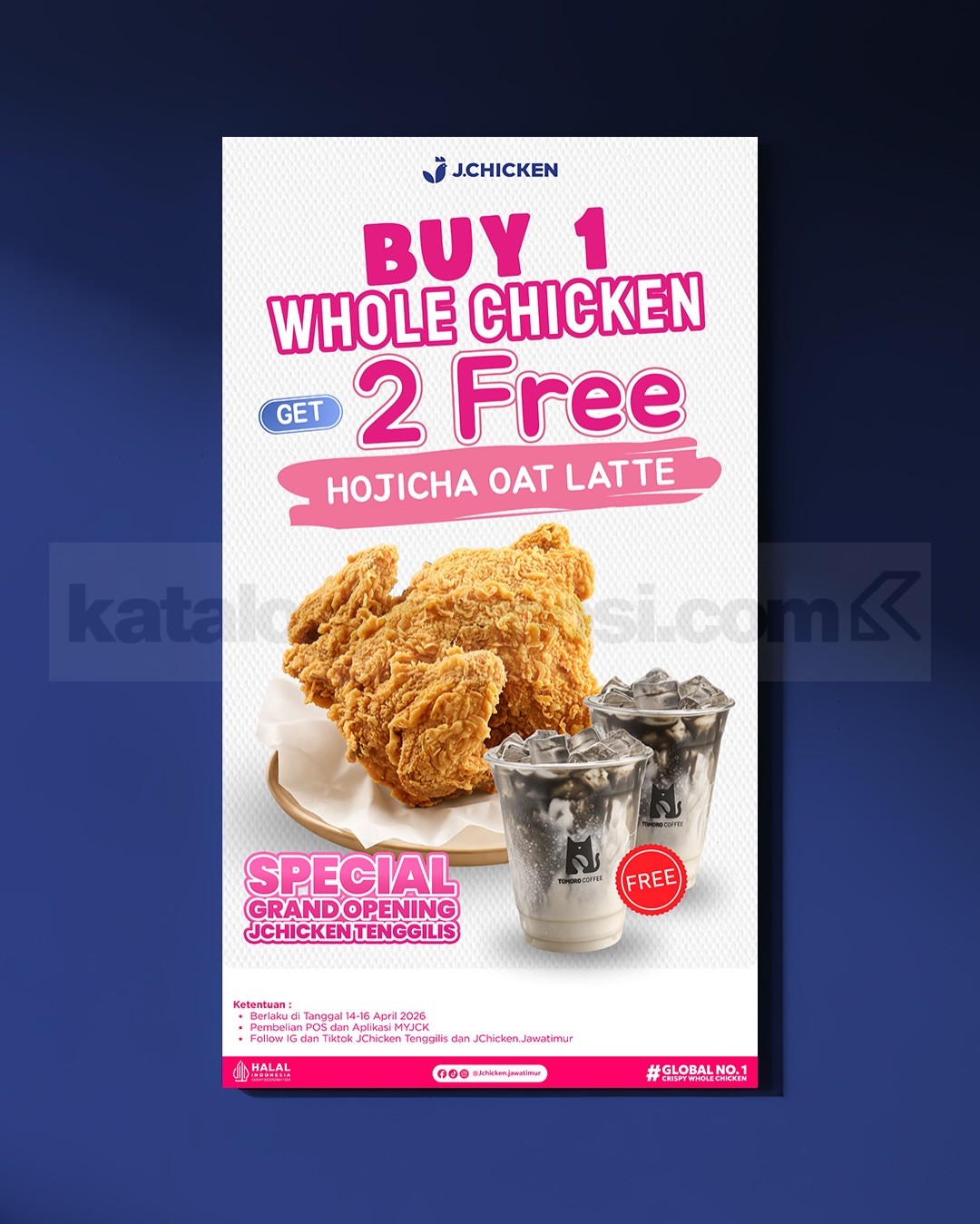 • 14–16 April 2026: Beli 1 whole chicken gratis 2 Hojicha Oat Latte