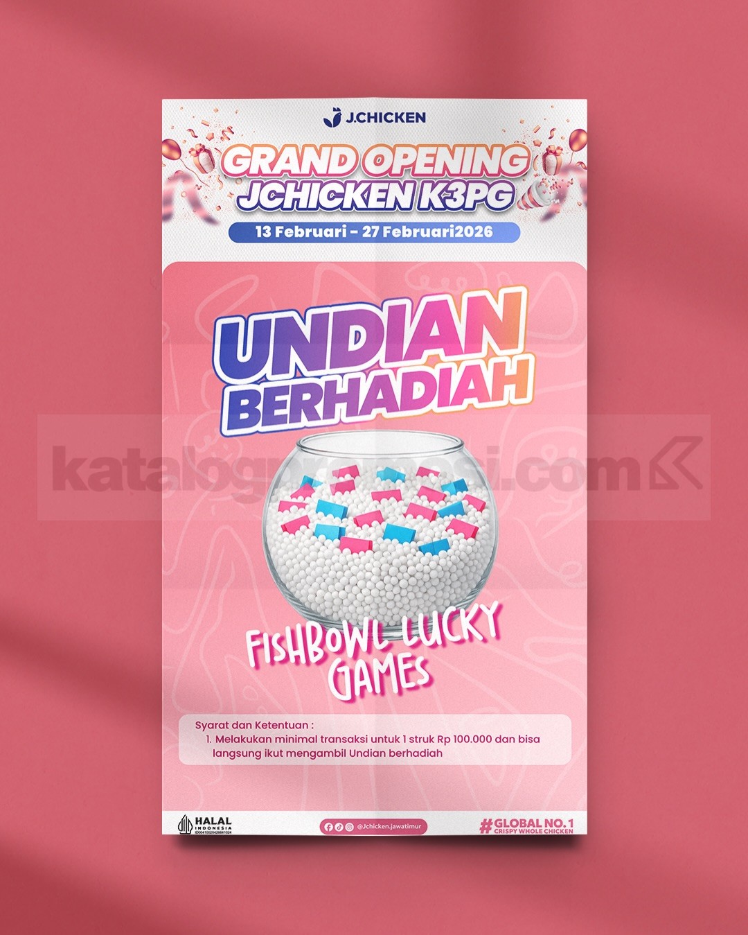 Promo JChicken K3PG Grand Opening Gratis 50 Whole Chicken dengan Special Package mulai Rp. 47.274 dan Fishbowl Lucky Games berlaku 13-27 Februari 2026 di Gresik.