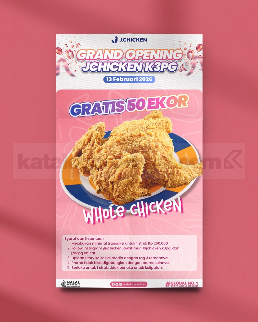 Detail Promo JChicken K3PG Grand Opening Gratis 50 Whole Chicken