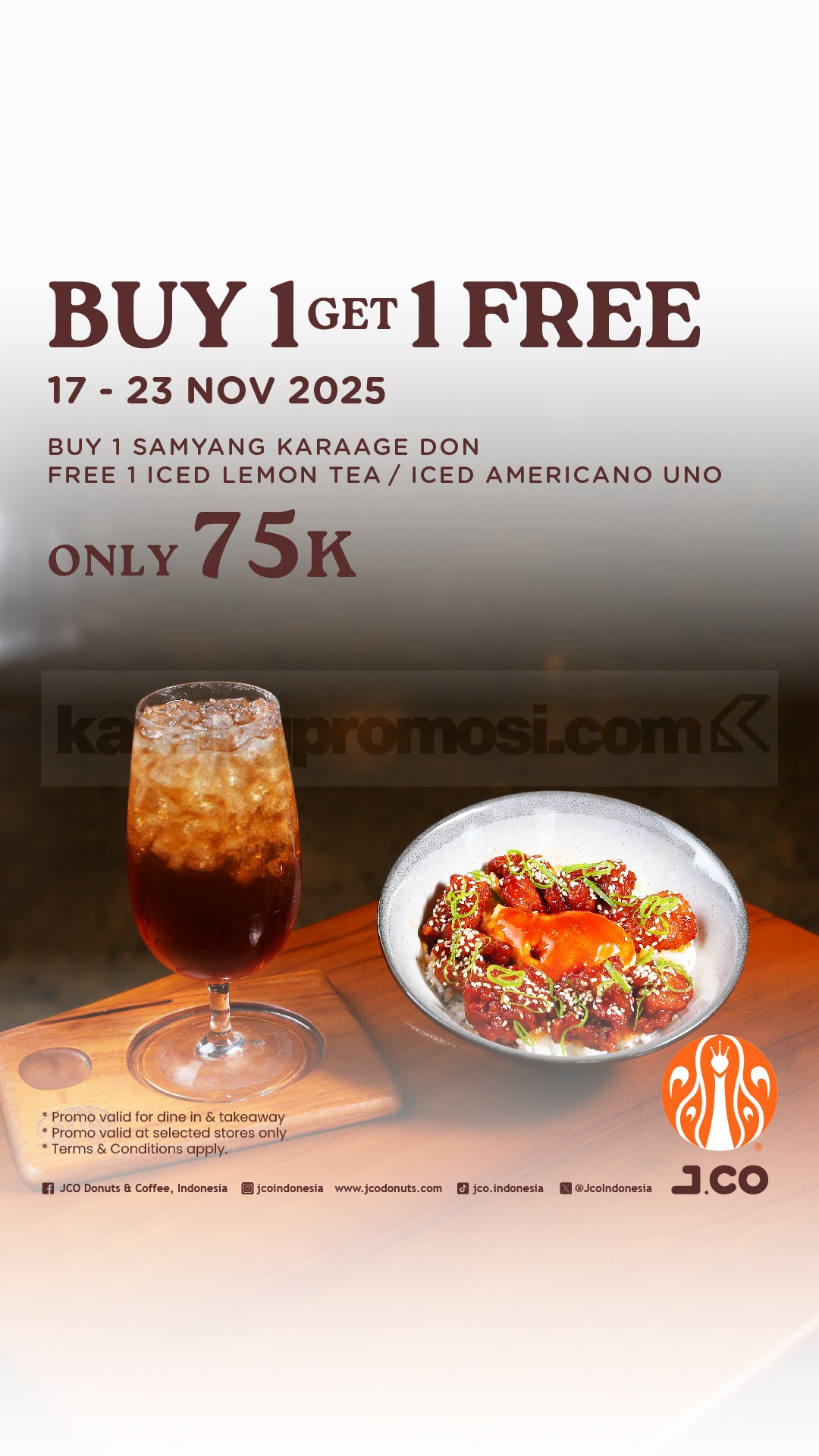 Kalau kamu suka yang pedas-pedas nendang, Promo JCO Samyang Karaage Don Free Drink ini fix bakal bikin Senin kamu makin on fire. Langsung aja sikat sebelum periodenya lewat ππ₯