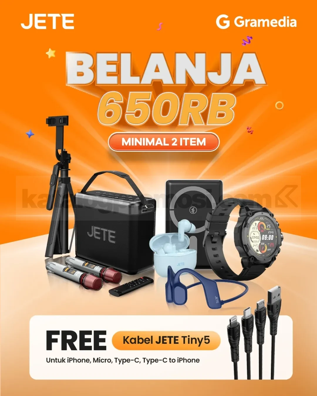 🔥 Pembelian di Gramedia minimal Rp650.000 (2 item): - Gratis Kabel Data JETE Tiny5 berbagai tipe