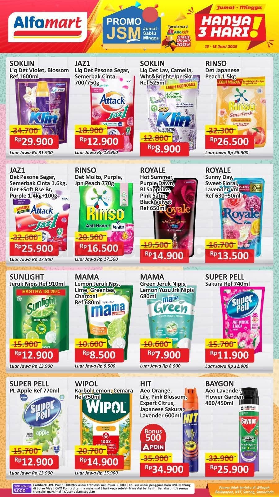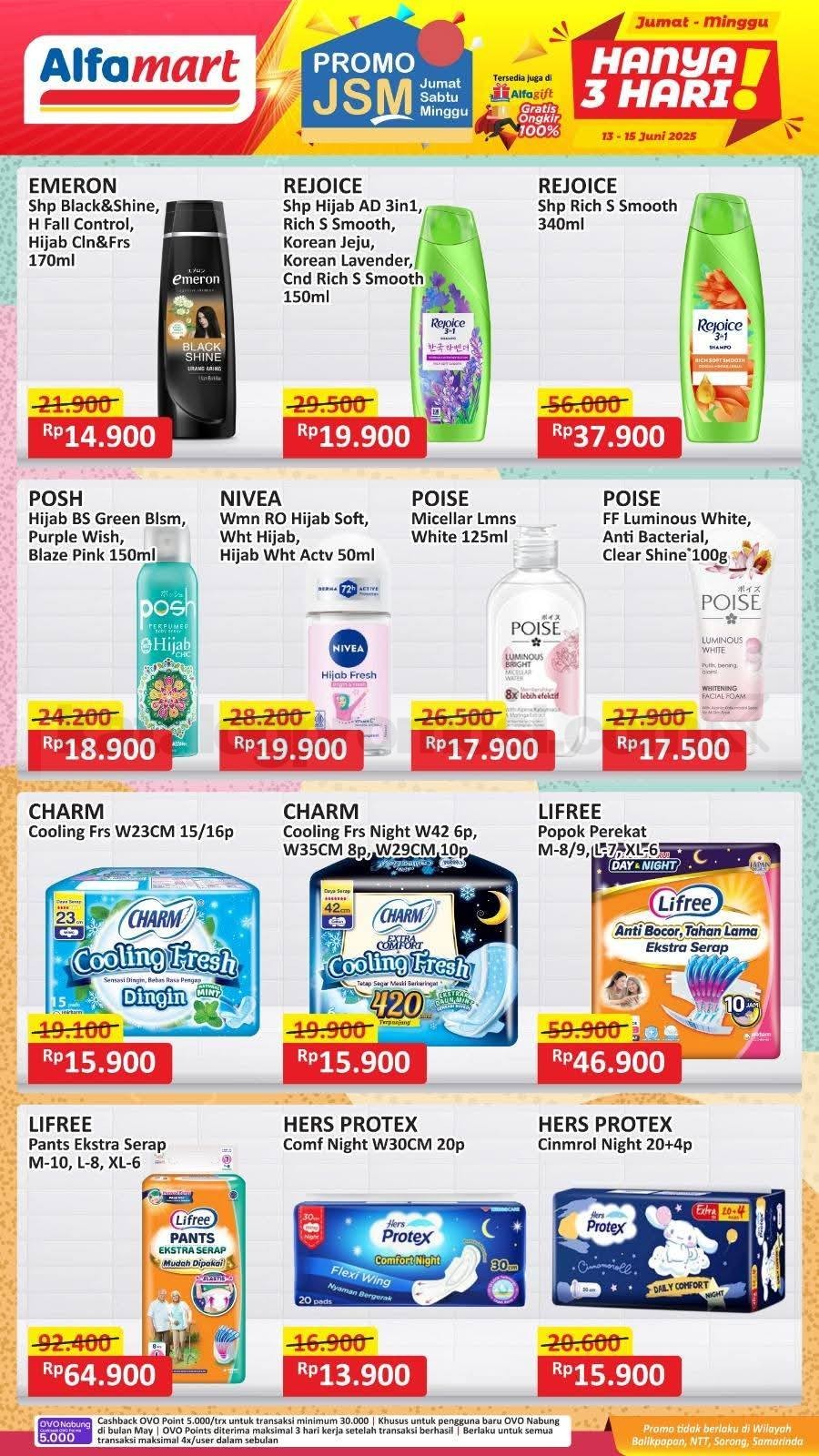 Belanja di Alfamart kali ini makin praktis dan hemat dengan Promo JSM Alfamart . Produk-produk diskon meliputi kebutuhan harian, perlengkapan rumah tangga, dan perlengkapan bayi, semuanya tersedia dengan harga yang lebih murah. Lebih serunya lagi, belanja lewat aplikasi Alfagift sekarang dilengkapi dengan penawaran gratis ongkir, jadi kamu bisa belanja tanpa perlu keluar rumah!