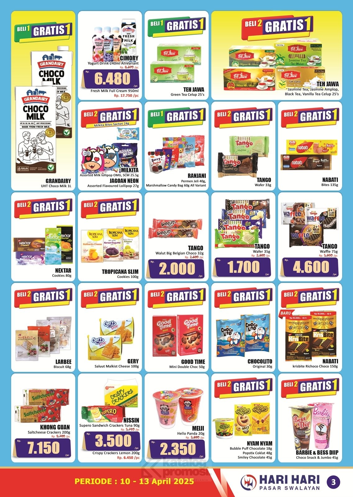 Dapatkan berbagai kebutuhan sehari-hari dengan harga yang lebih terjangkau. Mulai dari bahan pokok, makanan, minuman, hingga produk rumah tangga, semuanya tersedia dengan diskon menarik. Langsung aja kunjungi cabang Hari Hari terdekat dan nikmati promo ini!
