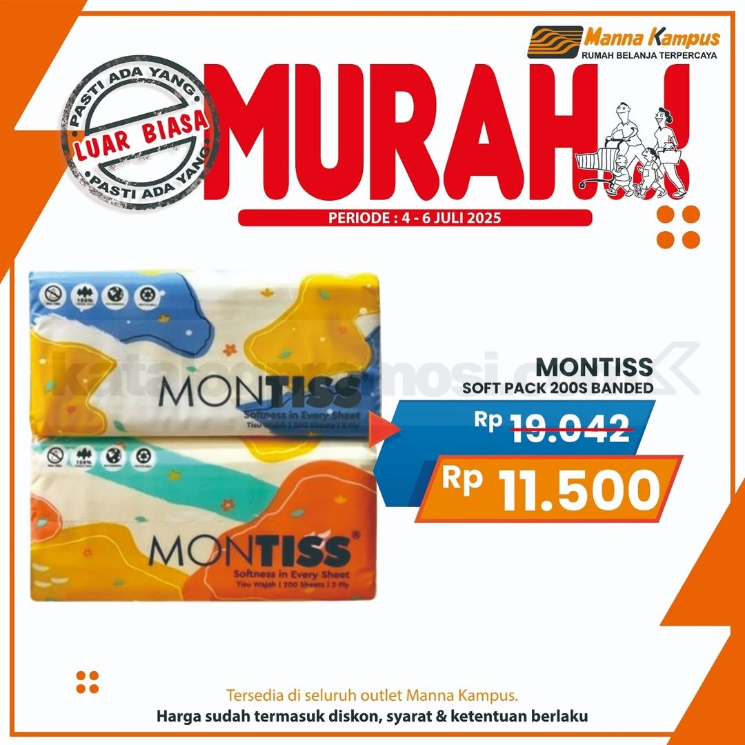 Akhir pekan waktunya belanja hemat di Promo JSM Manna Kampus! Mulai tanggal 05-07 Desember 2025, kamu bisa borong produk kebutuhan harian dengan harga spesial cuma di seluruh outlet Manna Kampus.