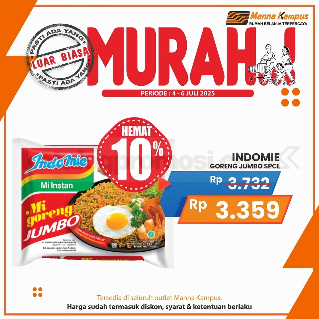 Jangan sampai kelewatan promo JSM Manna Kampus 05-07 Desember 2025, belanja kebutuhan harian harga spesial cuma di seluruh outlet Manna Kampus!