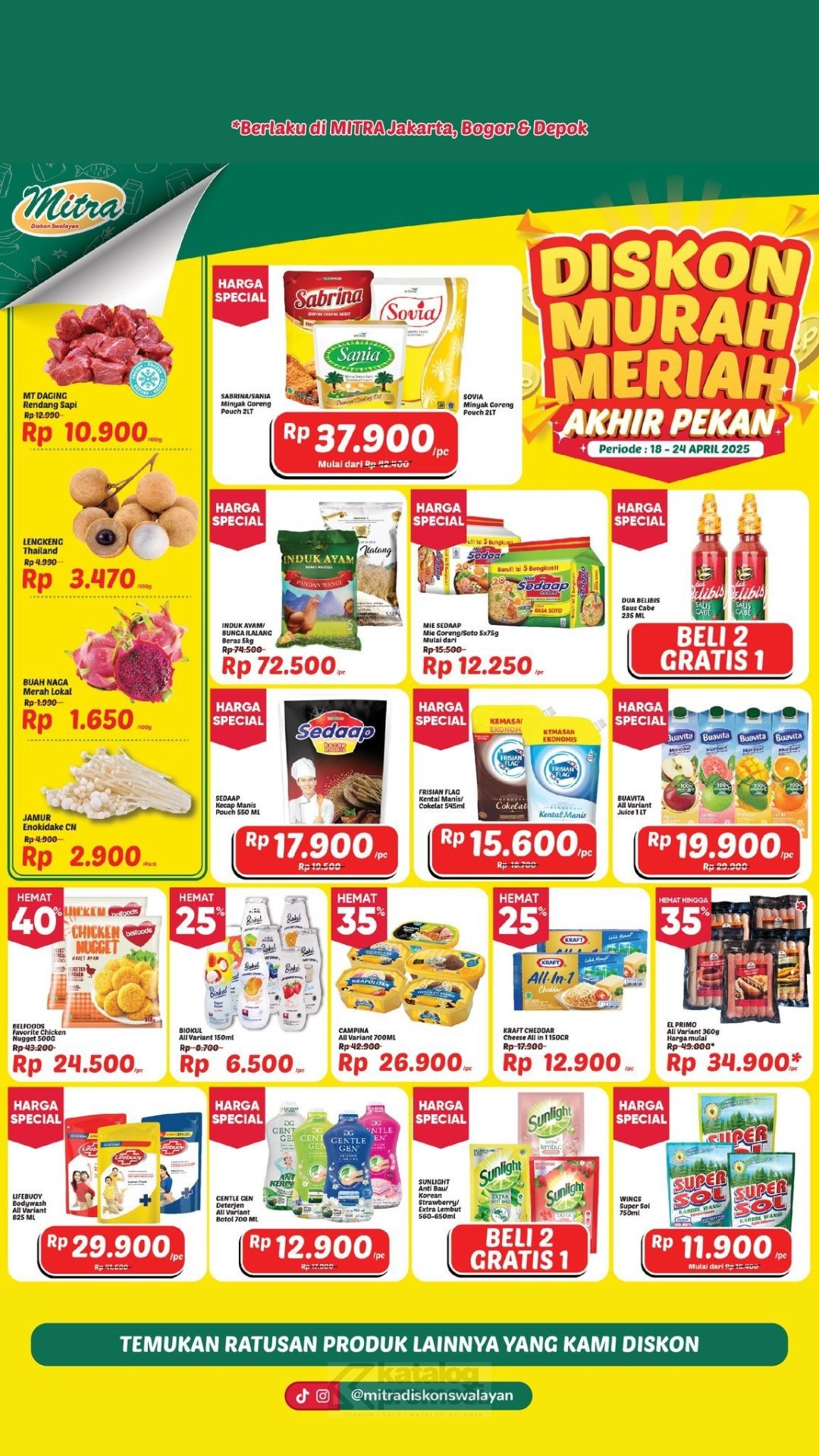 Sobat belanja, jangan lewatkan promo JSM (Jumat, Sabtu, Minggu) di Mitra Diskon Swalayan! Temukan berbagai penawaran spesial untuk kebutuhan harian kamu dengan harga yang lebih hemat.