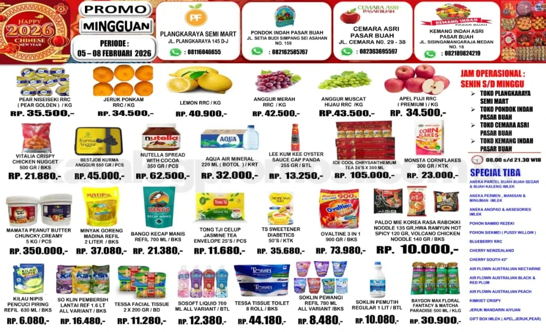 👉 Cek gambar promo JSM Plangkaraya Fruit Medan periode 05-08 Februari 2026 di bawah ini buat lihat produk lengkap dan harga hematnya!