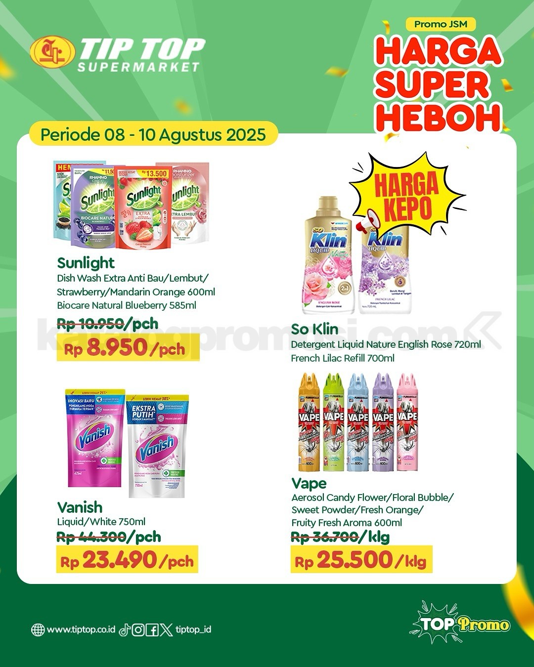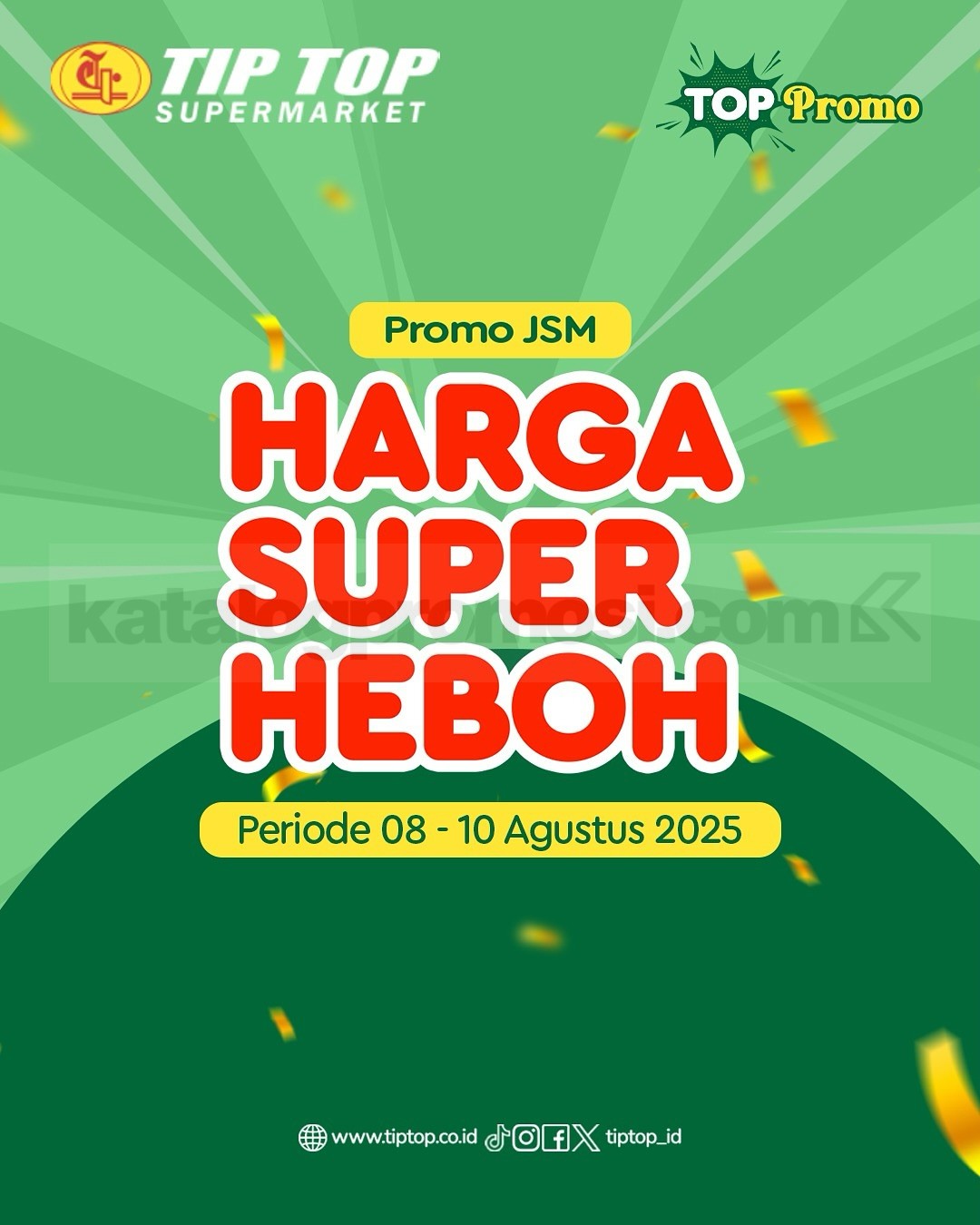 Belanja kebutuhan harian dengan harga spesial di Promo JSM TIP TOP Supermarket! Cek langsung penawaran terbaik dari 19-21 Desember 2025 untuk berbagai produk unggulan dengan Harga Super Heboh. Dari kebutuhan dapur hingga keperluan rumah tangga, semuanya tersedia di TIP TOP Supermarket. Pas banget buat belanja hemat dan praktis di akhir pekan! 😍