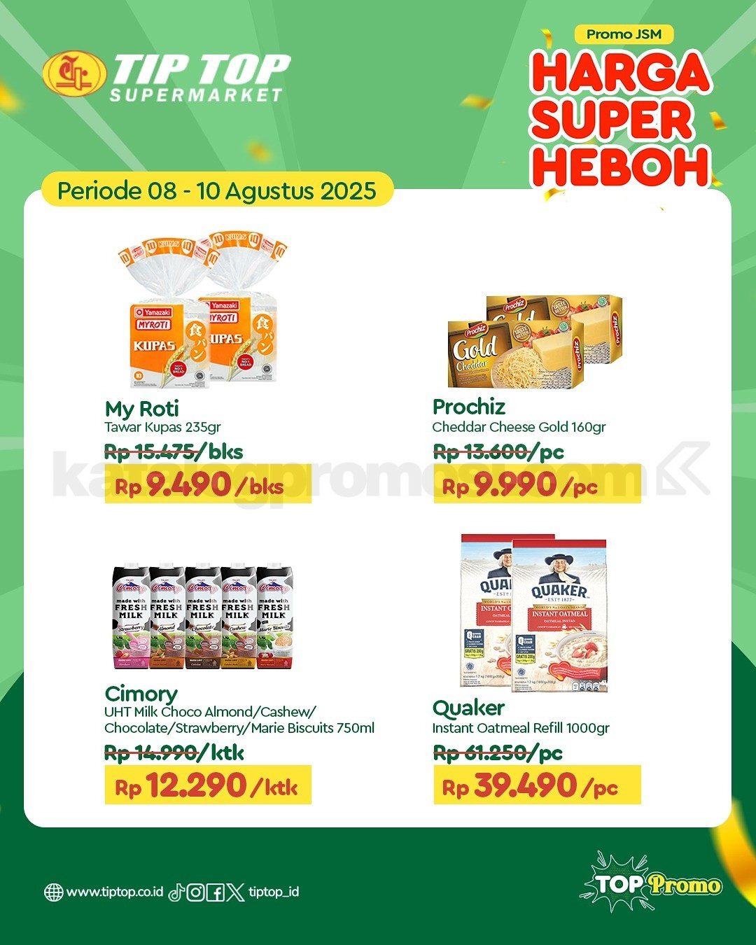 Jangan sampai ketinggalan! Manfaatkan Promo JSM TIP TOP Supermarket untuk belanja hemat di akhir pekan ini. Langsung ke TIP TOP Supermarket atau belanja mudah via SHOP.TIPTOP.CO.ID.