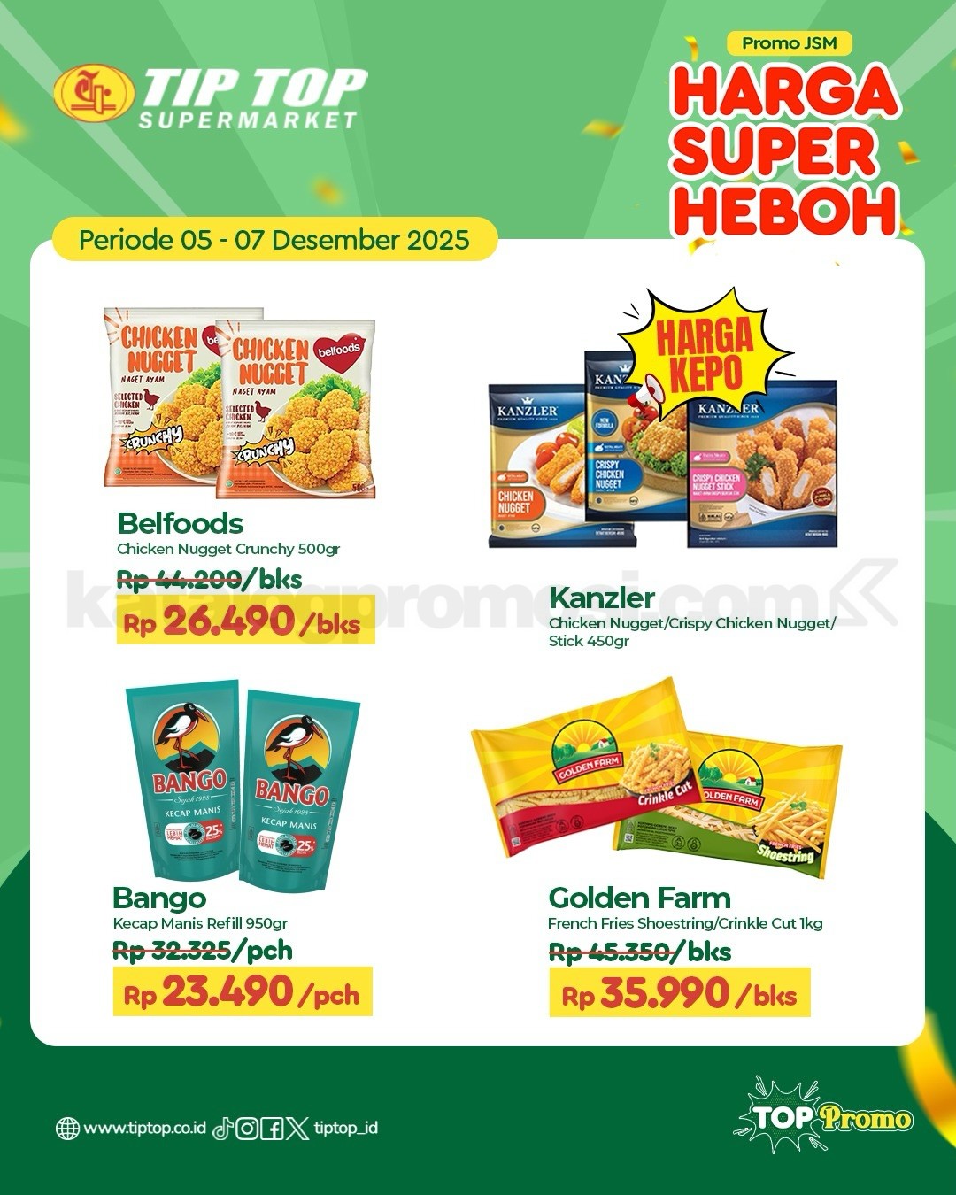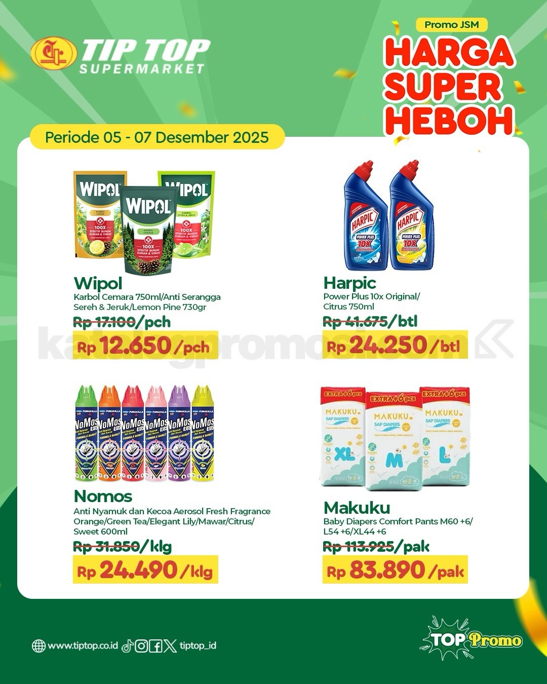 Belanja kebutuhan harian dengan harga spesial di Promo JSM TIP TOP Supermarket! Cek langsung penawaran terbaik dari 05-07 Desember 2025 untuk berbagai produk unggulan dengan Harga Super Heboh. Dari kebutuhan dapur hingga keperluan rumah tangga, semuanya tersedia di TIP TOP Supermarket. Pas banget buat belanja hemat dan praktis di akhir pekan! 😍