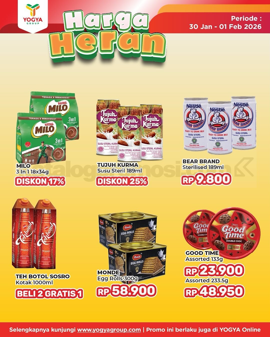Weekend ini saatnya belanja hemat di Toserba Yogya dengan promo Harga Heran! Kamu bisa menikmati berbagai produk kebutuhan sehari-hari dengan harga spesial yang bikin kaget. Mulai dari sembako, produk segar, hingga kebutuhan rumah tangga, semuanya ada di promo kali ini.