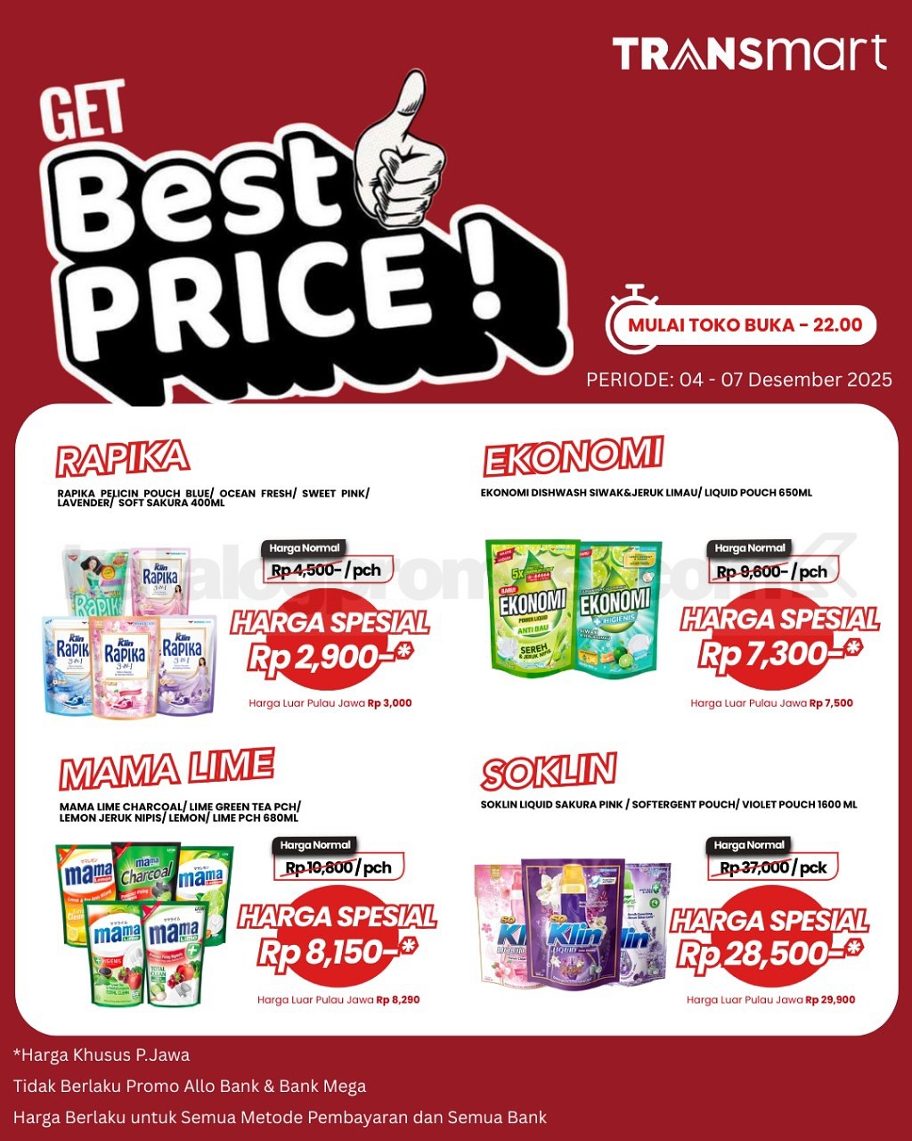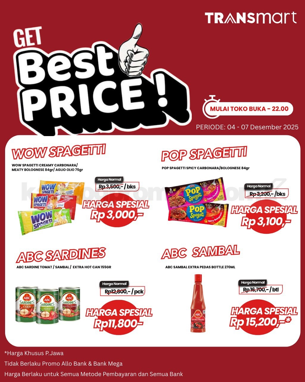 Hai, #KeluargaTransmart! Ada kabar gembira buat kamu yang suka belanja hemat di akhir pekan. Promo JSM Transmart hadir kembali Mulai tanggal 04-07 Desember 2025. Banyak promo WOW HEMAT yang siap menemani belanja kebutuhan harianmu. Dari kebutuhan rumah tangga, bahan makanan, hingga produk segar, semuanya tersedia dengan harga spesial selama tiga hari ini. Jangan sampai lewatkan kesempatan buat belanja murah dan tetap hemat!