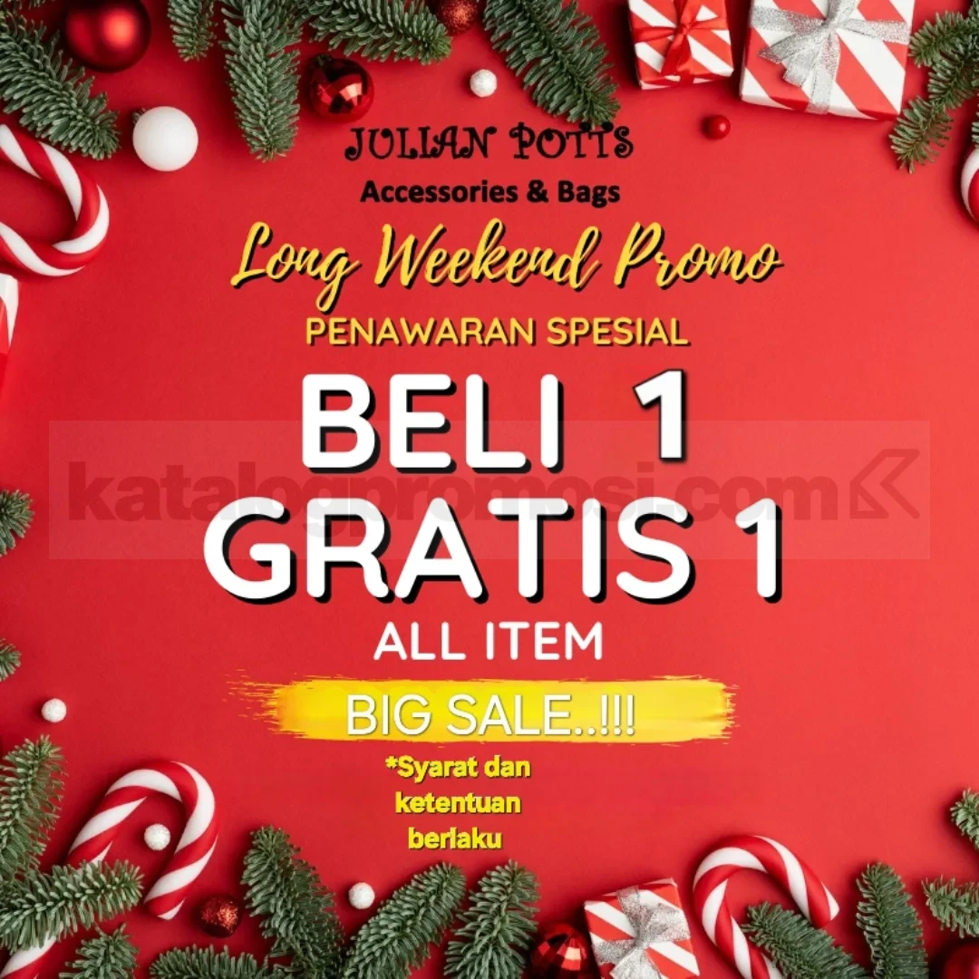 Yuk, jangan cuma wacana! Langsung manfaatin Promo Julian Potts Akhir Tahun Beli 1 Gratis 1 sekarang juga. Datang ke toko Julian Potts, belanja puas, pulang bawa lebih banyak ποΈπ₯