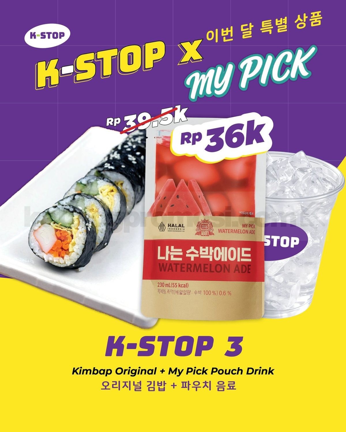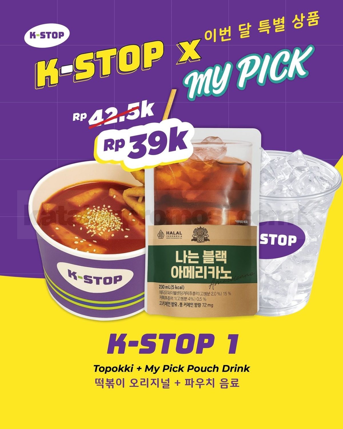 • Setiap paket sudah termasuk satu menu K-STOP dan satu MY PICK Pouch Drink