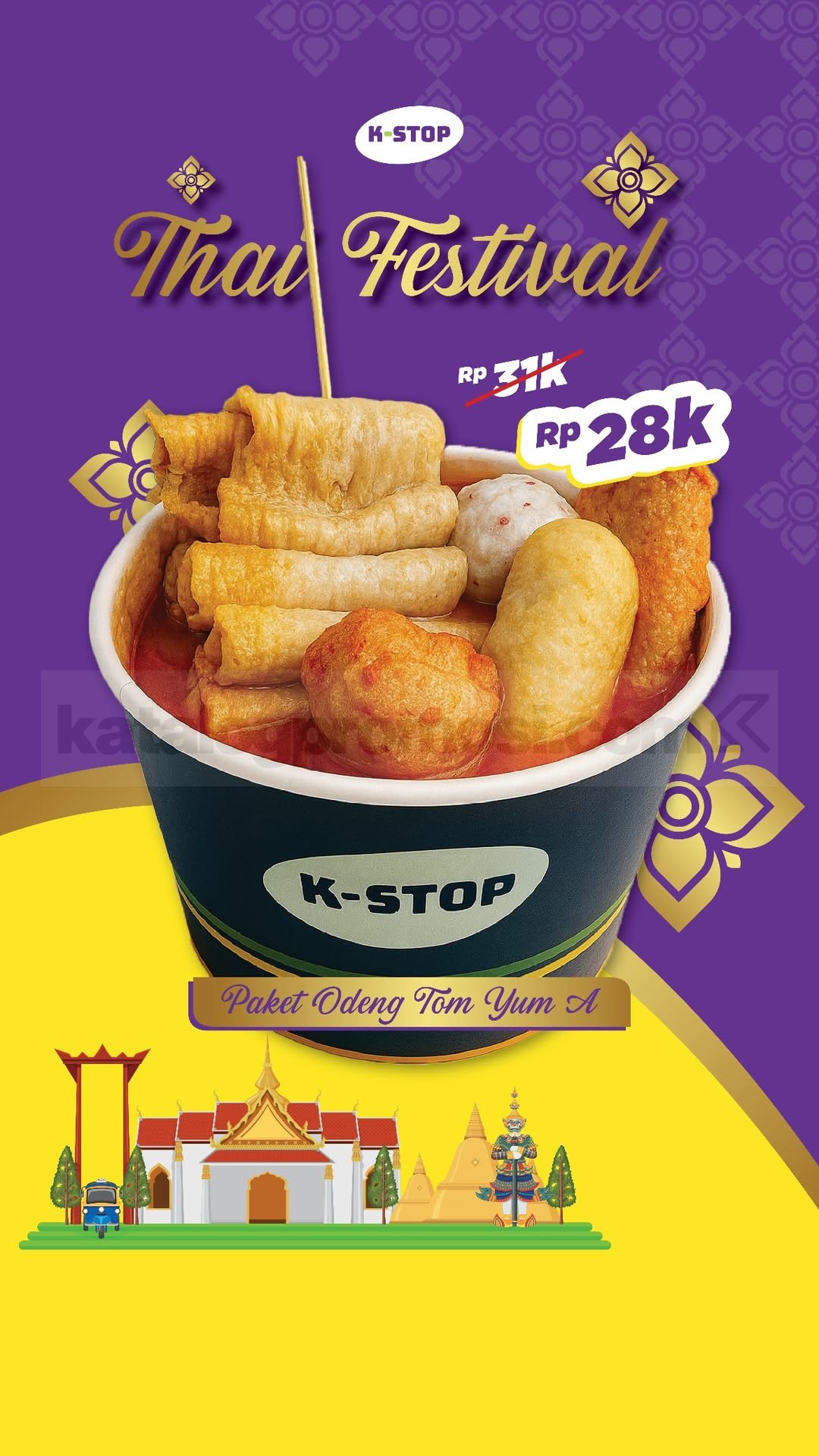 Promo K-STOP Thai Festival Menu Thailand mulai Rp. 12.000 dengan pilihan jajanan Thailand autentik seperti odeng tom yum, gorengan sambal Thai, dan Thai tea berlaku selama persediaan masih ada.