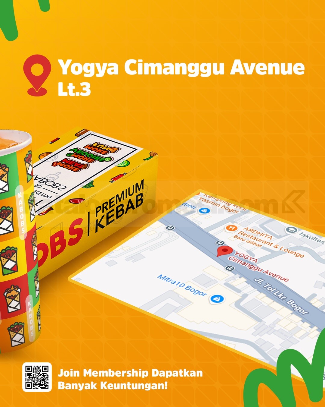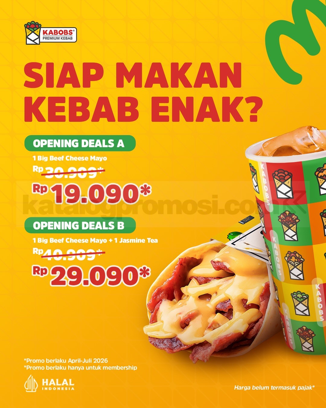 Promo Kabobs Grand Opening Menu Favorit mulai Rp. 19.090 dengan membership, berlaku mulai tanggal 26 April 2026 – 31 Juli 2026 di Yogya Cimanggu Avenue Bogor.
