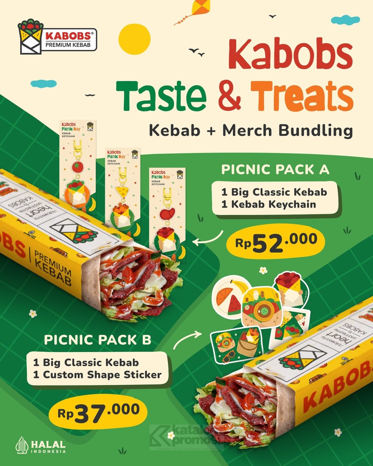 Mau ngemil enak sambil bawa pulang merchandise lucu? ๐ Ini dia Promo Kabobs bundling kebab dan merchandise yang lagi happening banget di outlet-outlet Kabobs terpilih! Dengan beli satu Big Classic Kebab, kamu bisa dapetin bonus merch edisi spesial mulai dari keychain kebab yang gemesin sampai stiker custom yang super aesthetic ๐โจ