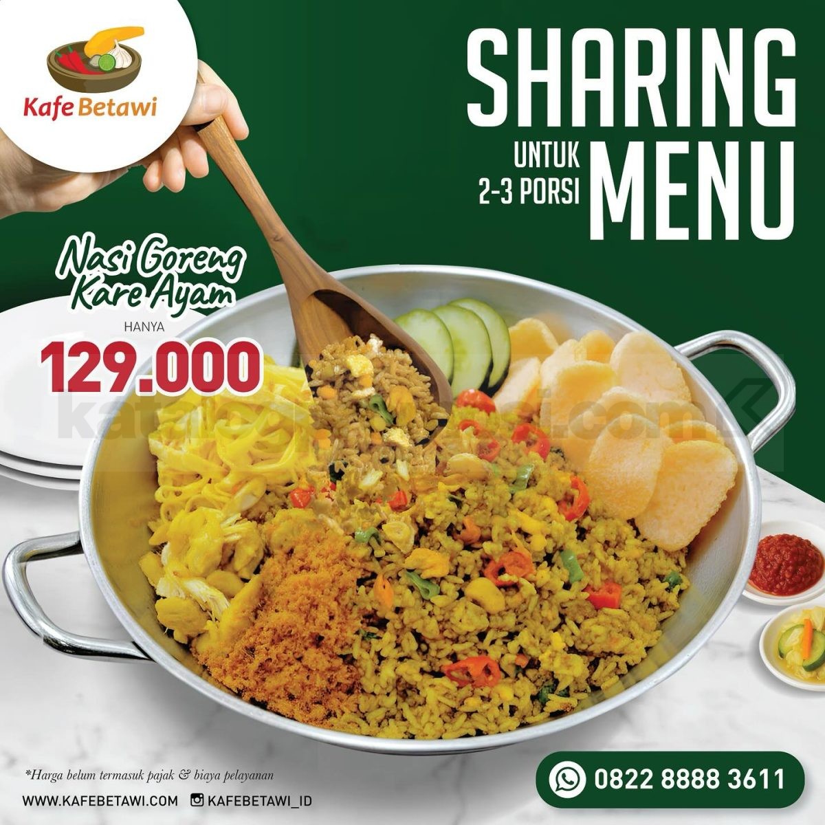 Promo kafe Betawi Sharing Menu cuma Rp 129.000 Porsi pas untuk 2-3 orang lebih seru bareng teman & keluarga.