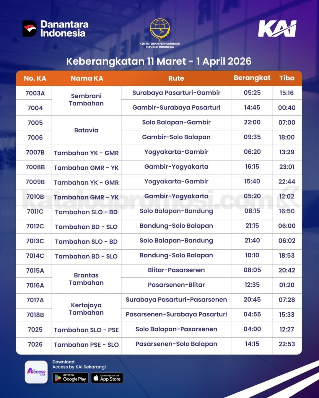 Selain diskon tarif, KAI juga menyediakan tiket kereta tambahan Lebaran 2026 bagi masyarakat yang belum mendapatkan tiket reguler. Penjualan tiket tambahan dimulai 11 Februari 2026 pukul 00.00 WIB dengan pembagian periode sebagai berikut: