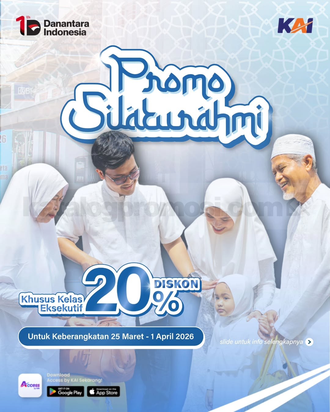 Promo KAI Silaturahmi diskon 20% tiket kereta eksekutif, pembelian via Access by KAI berlaku mulai tanggal 25 Maret 2026 – 1 April 2026.