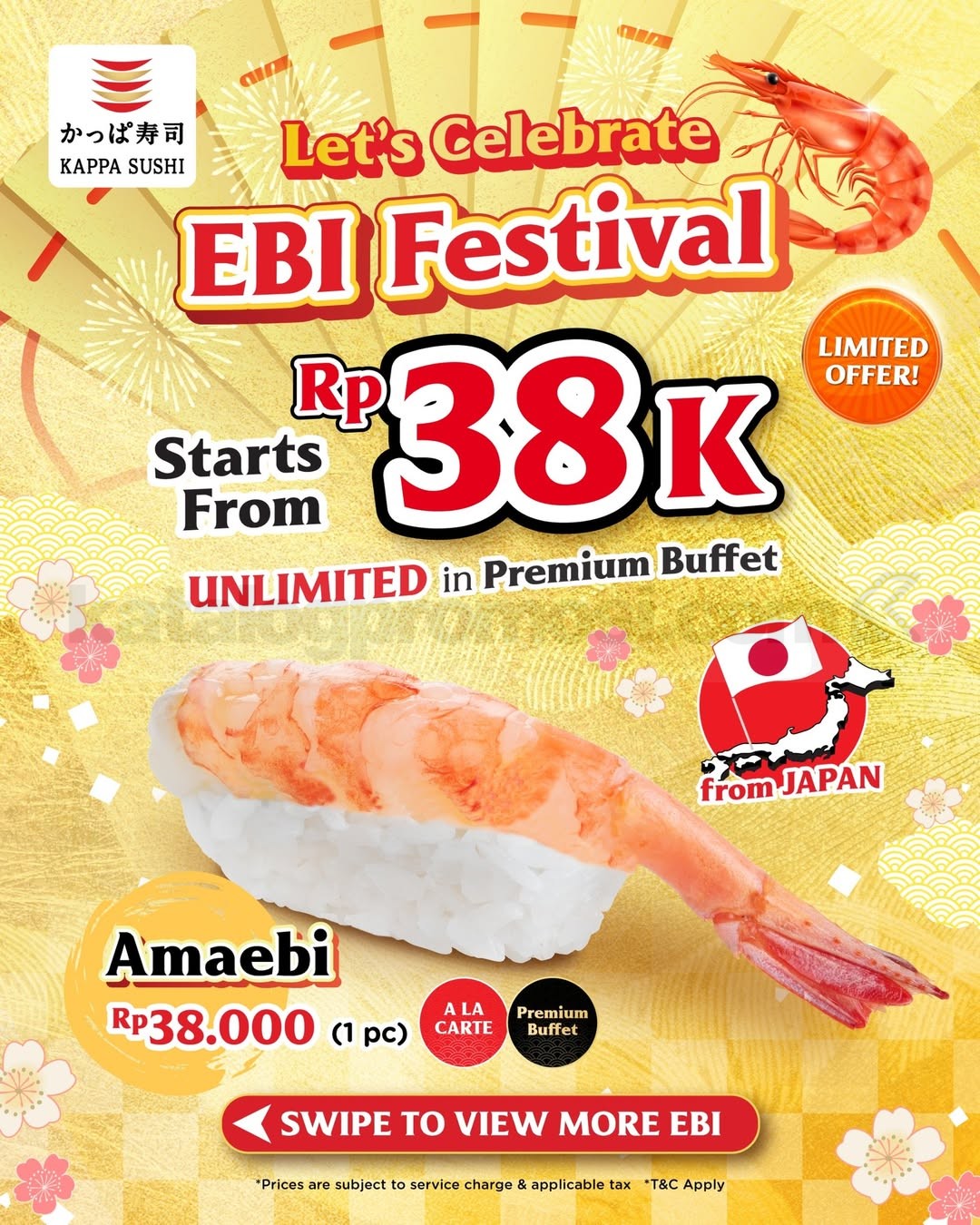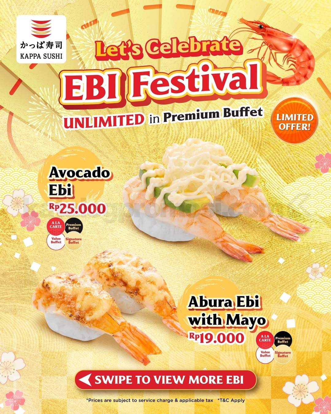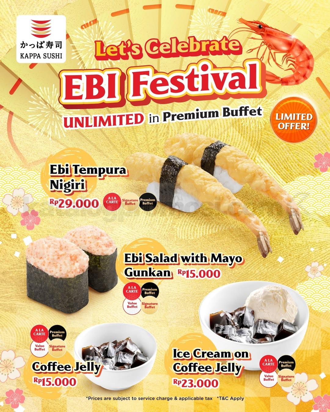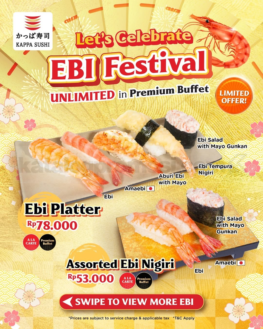 Promo Kappa Sushi Ebi Festival mulai Rp15.000++! Tersedia unlimited buffet & a la carte, hanya di outlet tertentu mulai 19 Mei 2025!