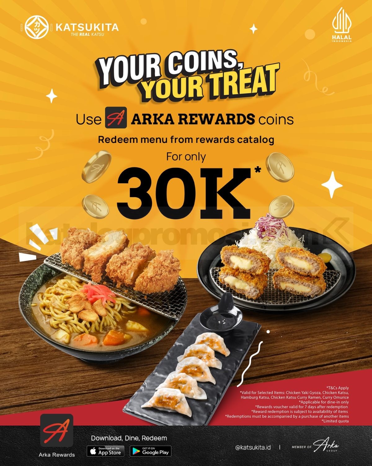 Jangan tunggu sampai kehabisan! Yuk langsung buka aplikasi Arka Rewards dan tukerin coin-mu sekarang juga di Promo Katsukita Arka Harpelnas Menu Favorit cuma 30.000 coin! Cuma berlaku sampai 30 September 2025, jadi pastiin kamu jadi yang pertama nikmatin menunya! ๐