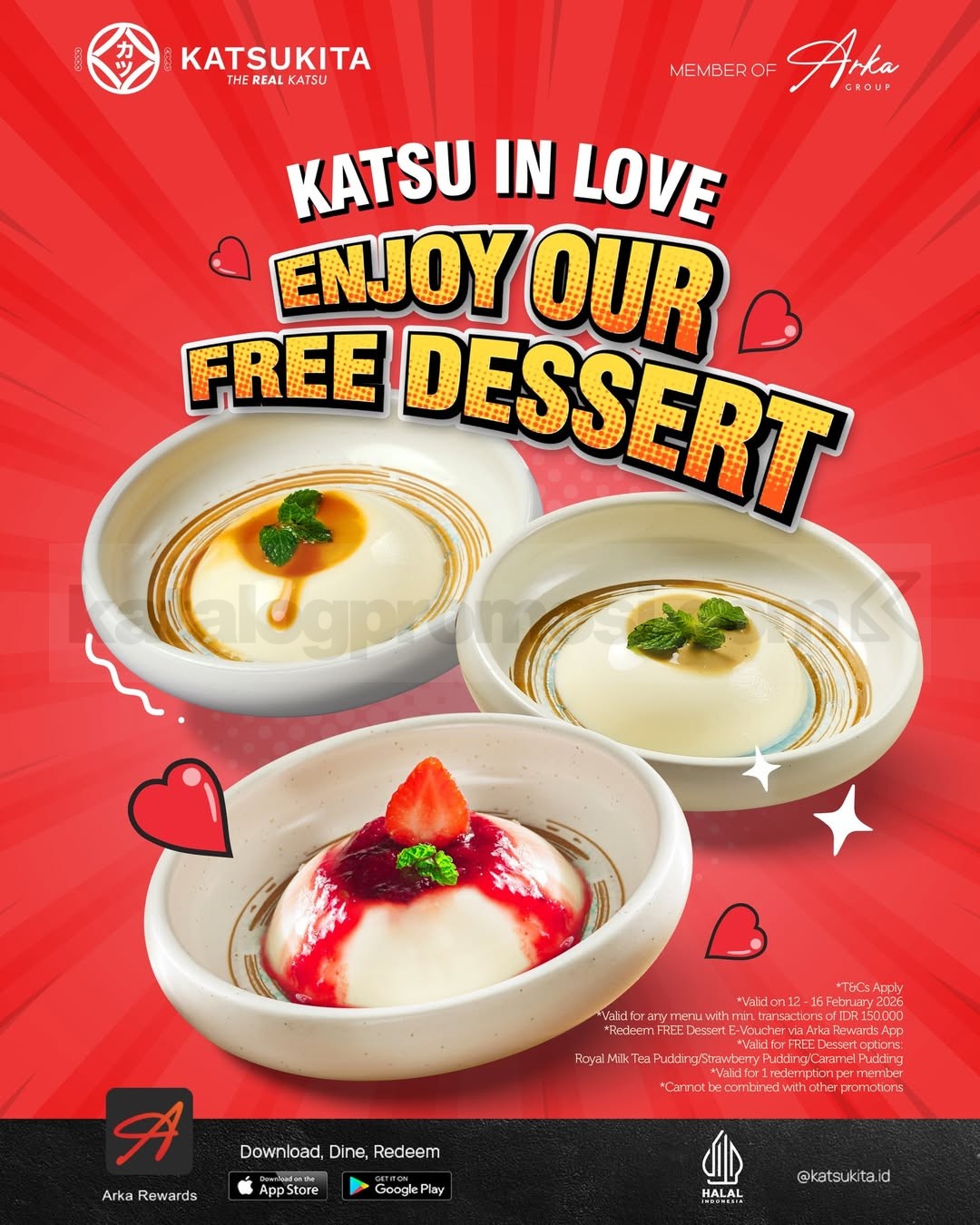 Promo Katsukita Katsu in Love Gratis Dessert nikmati pudding gratis via Arka Rewards berlaku 12 Februari 2026 – 16 Februari 2026 di seluruh outlet