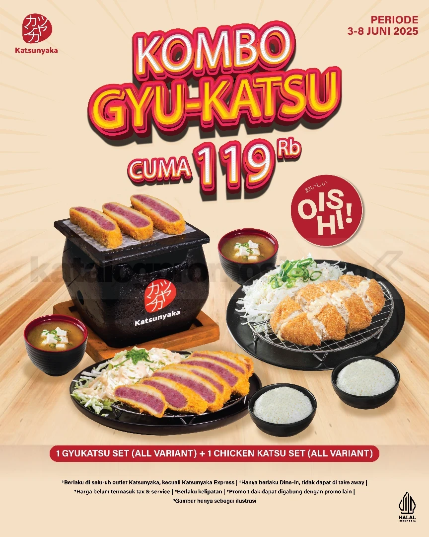 Promo Katsunyaka Anniversary 2 Chicken Katsu Set Rp. 66.000 cocok buat yang mau makan bareng dengan porsi pas dan harga lebih ramah. Pastikan datang di periode promo supaya tidak kelewatan momennya.