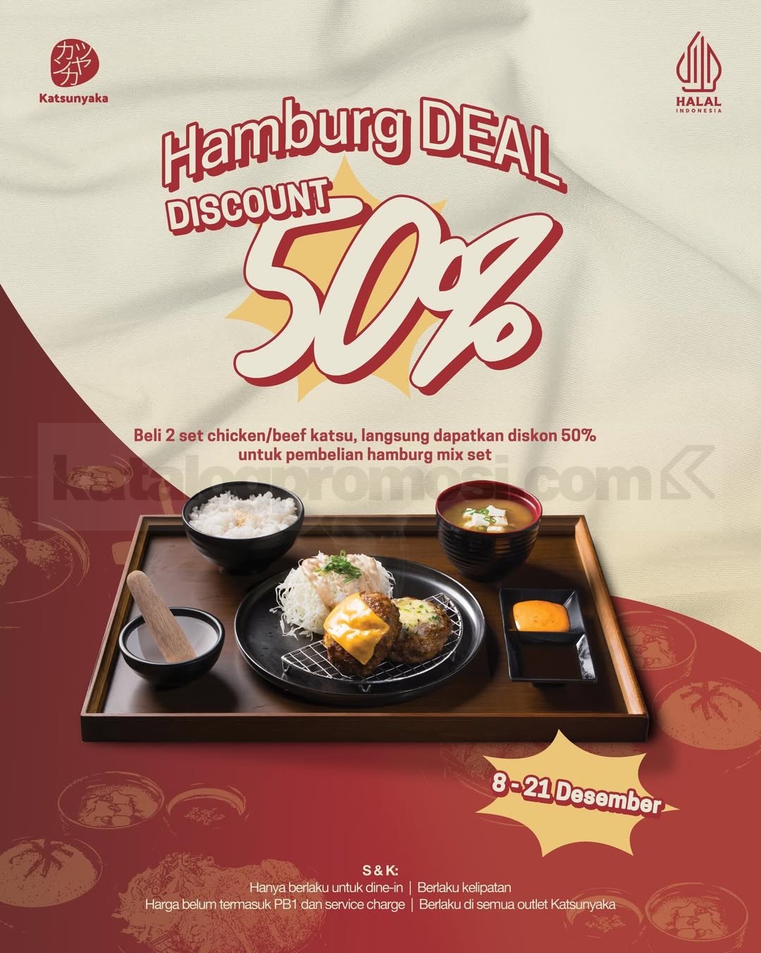 Promo Katsunyaka Mix Hamburg Series Diskon 50%, beli 2 Set Chicken/Beef Katsu, dapatkan Mix Hamburg set setengah harga, berlaku 8-21 Desember 2025 di semua outlet.