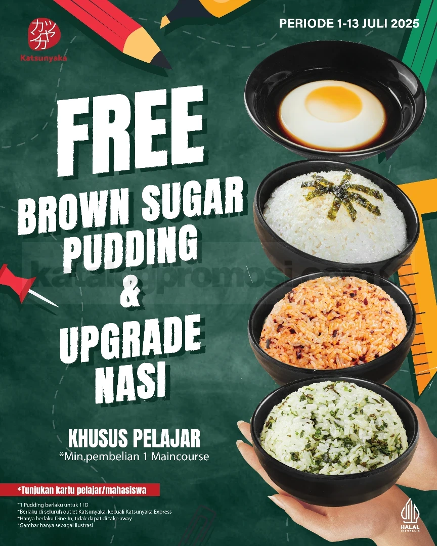 Untuk menikmati promo ini, kamu hanya perlu membeli 2 Hamburg Set varian apa pun saat dine in di seluruh outlet Katsunyaka. Setelah itu, kamu langsung berhak melakukan tebus murah Hamburg Garlic Set seharga Rp.10.000 tanpa syarat tambahan lain. Harga belum termasuk PB1 dan service, namun tetap jadi pilihan paling hemat untuk makan enak menjelang akhir tahun.