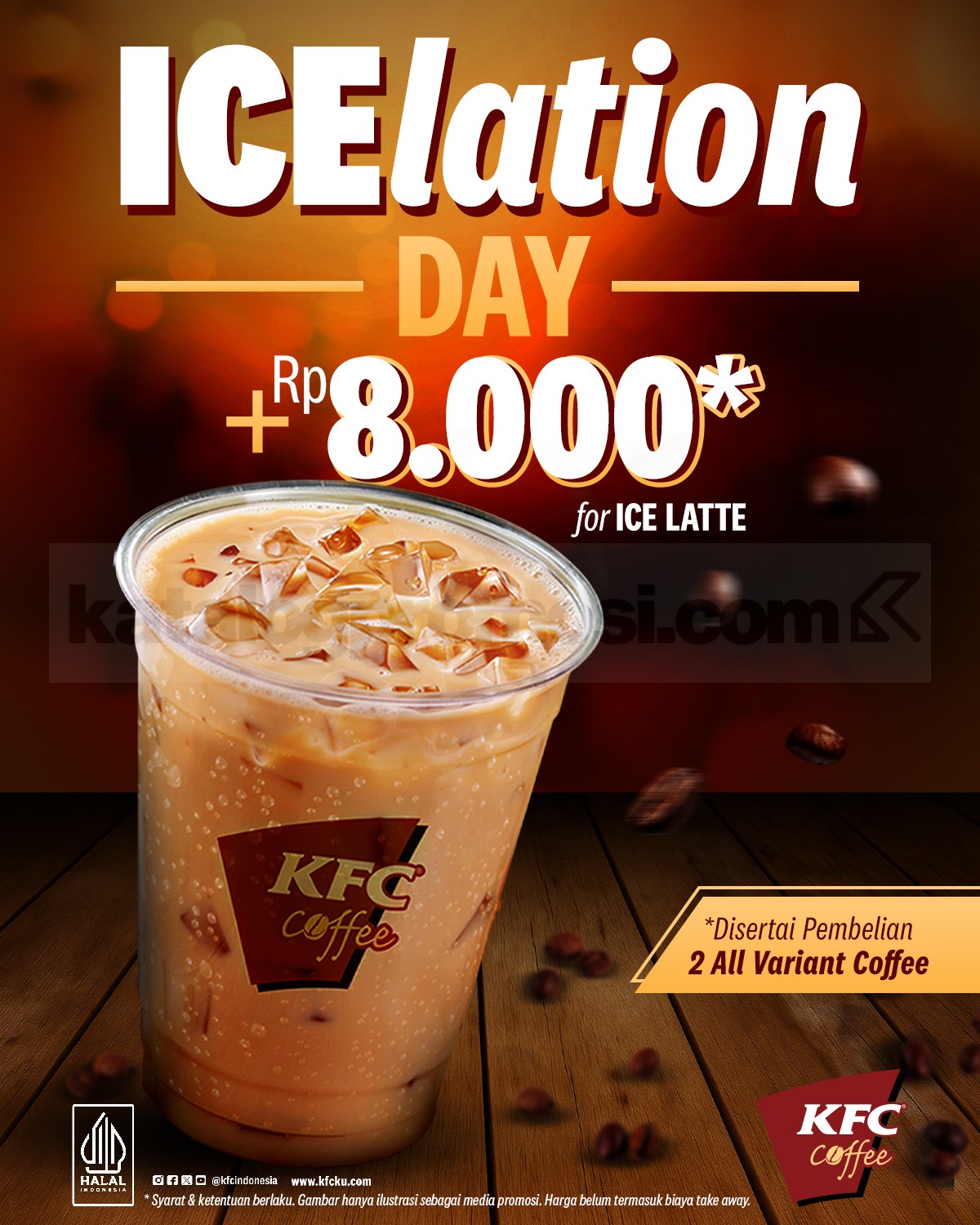 ICElation Mode: ON! Buat kamu pencinta kopi dingin, sekarang ada penawaran spesial dari KFC Coffee. Tambah Ice Latte cuma Rp8.000 aja kalau kamu beli 2 varian kopi favorit. Pas banget buat nemenin siang panas biar tetap segar dan hemat.