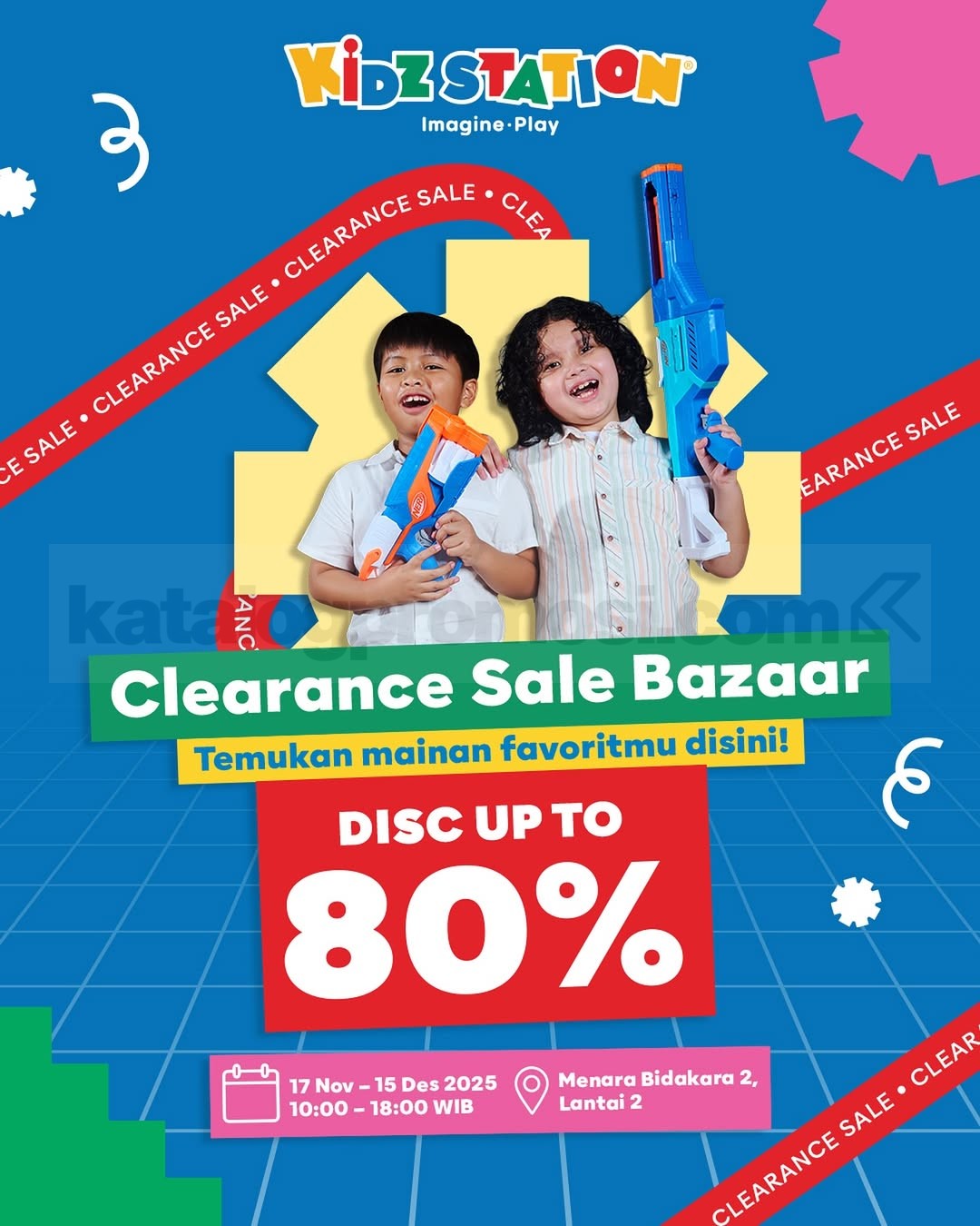 Promo Kidz Station Clearance Sale Bazaar diskon hingga 80% untuk berbagai mainan favorit anak, berlaku mulai tanggal 17 November 2025 – 15 Desember 2025 di Menara Bidakara 2.