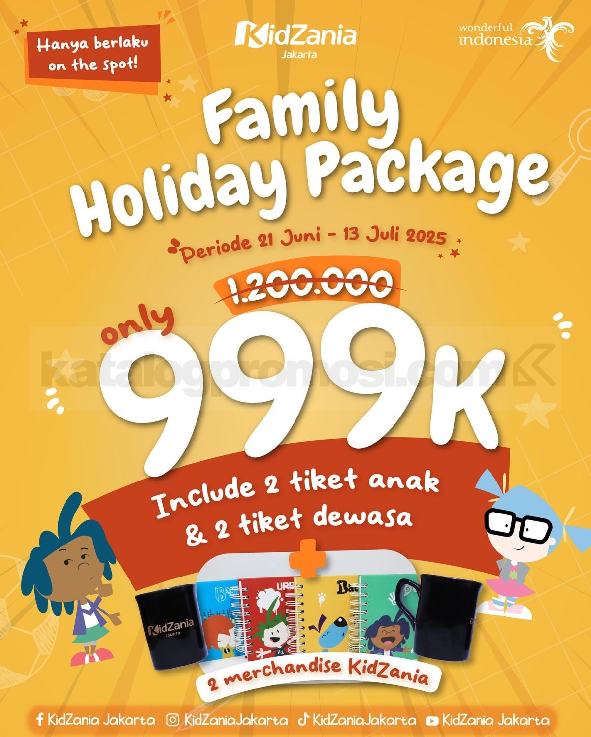- Harga paket Rp999.000 sudah termasuk 2 tiket anak, 2 tiket dewasa, dan 2 merchandise.
