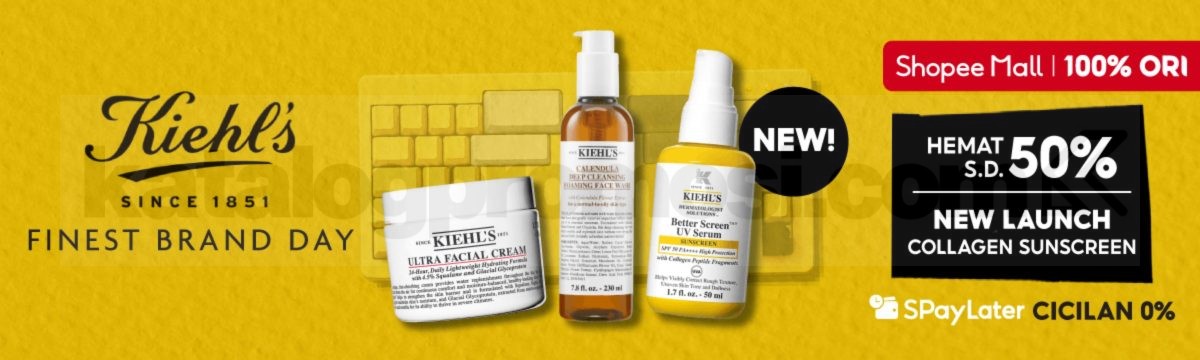 Event promo khusus dari Kiehl’s di Shopee yang menawarkan diskon besar untuk produk skincare pilihan.