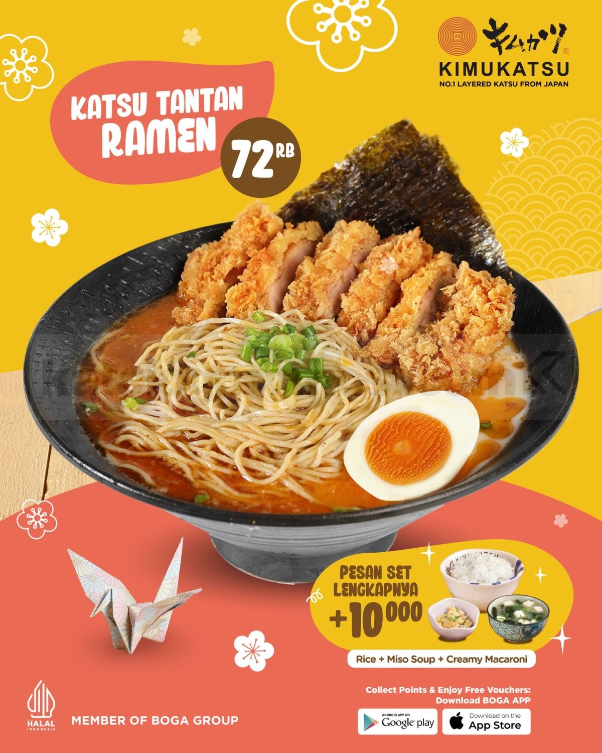 Promo Kimukatsu 5 Menu Favorit Mulai Rp. 59.000 nikmati pilihan katsu dan ramen favorit netizen dengan opsi set lengkap tambah Rp. 10.000 berlaku selama persediaan masih ada.