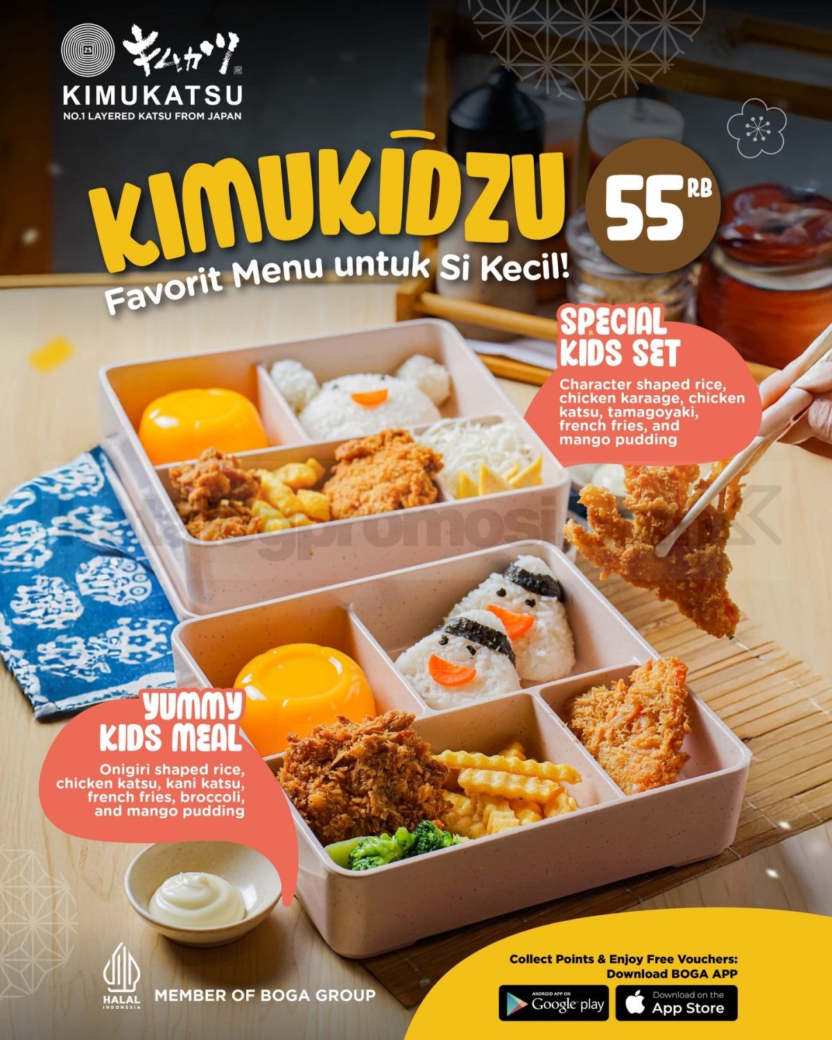Promo Kimukatsu Kimukidzu Kids Set Rp. 55.000 berlaku di outlet Kimukatsu dengan pilihan menu ramah anak untuk quality time bareng keluarga