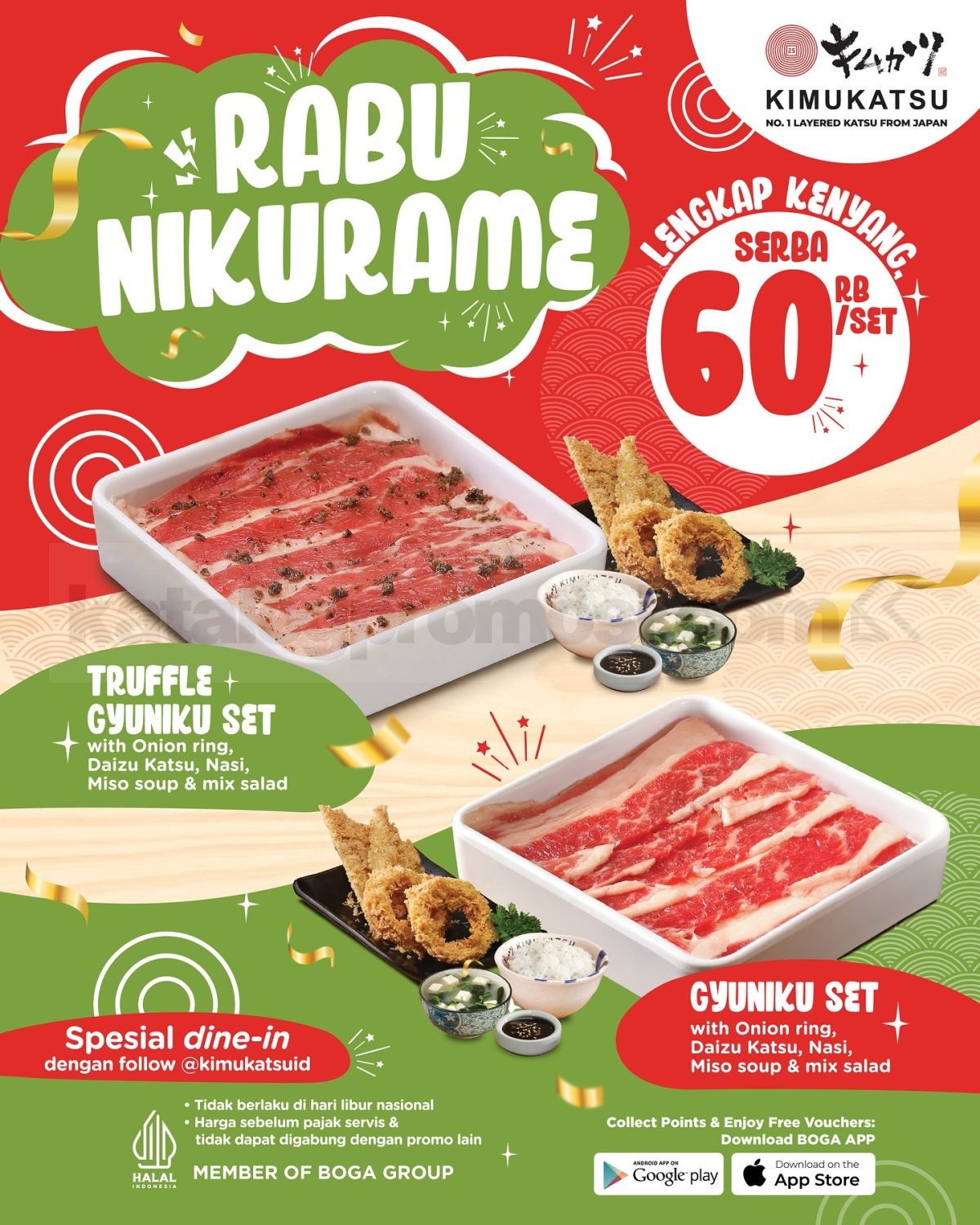 👉 Cek gambar promo Kimukatsu Rabu Nikurame beef set serba Rp60.000 di bawah ini untuk info lengkap dan syarat promo!