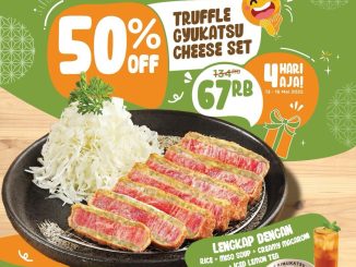 Nikmati ALL GYUNIKU SET lengkap dengan Nasi, Miso Soup, dan Salad hanya seharga Rp35.000, dengan diskon lebih dari 50% dari harga normal Rp70.000βRp80.000. Berlaku untuk varian Truffle Gyuniku Set dan Gyuniku Set.