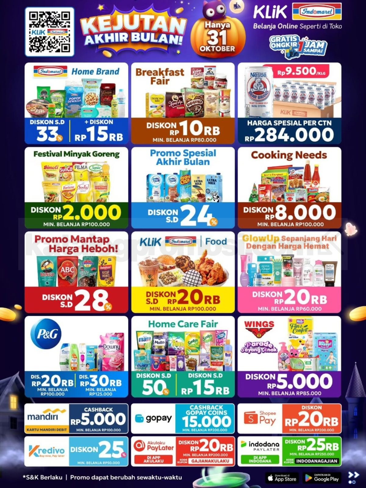 Promo KlikIndomaret Payday Sale Diskon hingga 50% berlaku 31 Oktober 2025 dengan tambahan cashback Mandiri, Gopay, Shopeepay, Kredivo, & Indodana. Berlaku 1 hari!
